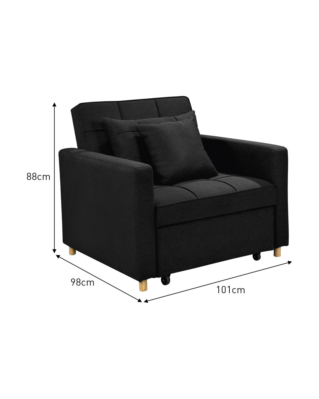 - Converts from a 1-seater sofa to a bed or lounger