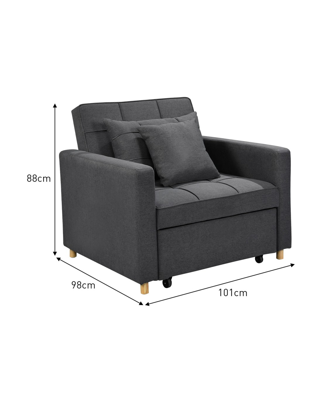 - Converts from a 1-seater sofa to a bed or lounger