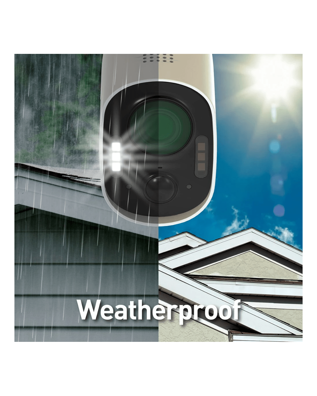 - Its weatherproof design is intended to work in rain and snow, all year round.