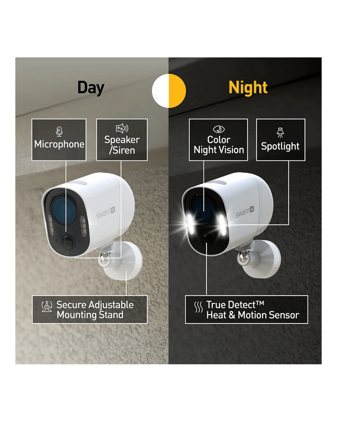 Keep your home safe and secure with the Swann Xtreem4K Eco Wireless Security Camera. comes with a solar panel for reliable, continuous charging and is completely wireless so you can position it wherever you need. Plus, it includes free rolling cloud storage and 32GB of local MicroSD card storage.