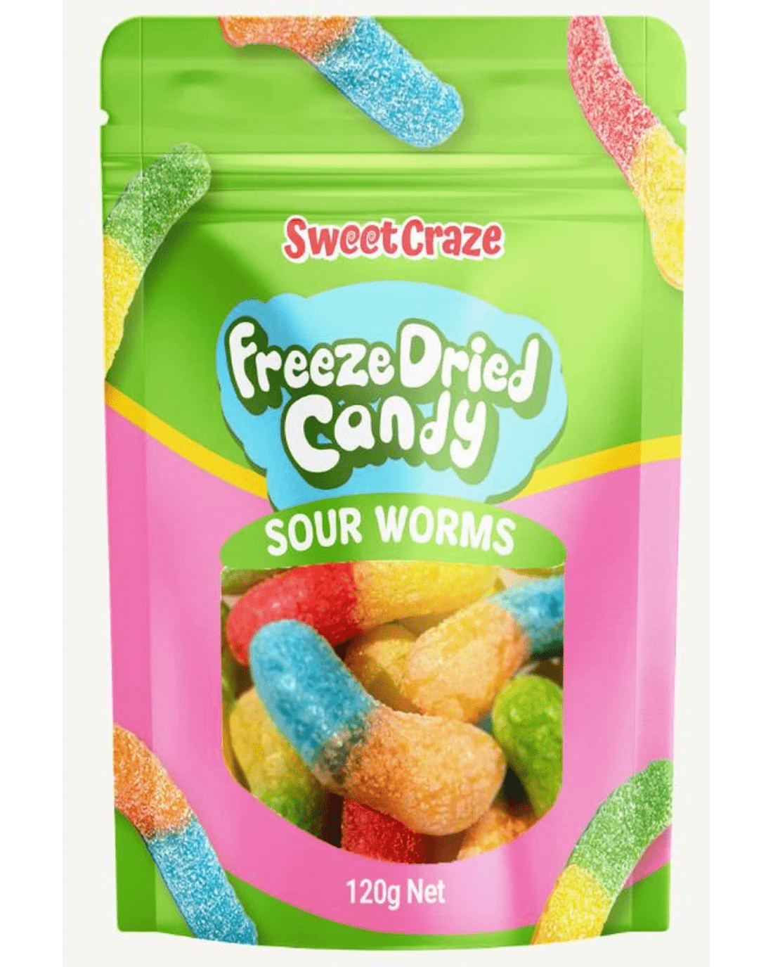 Sold by KmartSweet Craze Sour Worms Freeze Dried Candy 120g