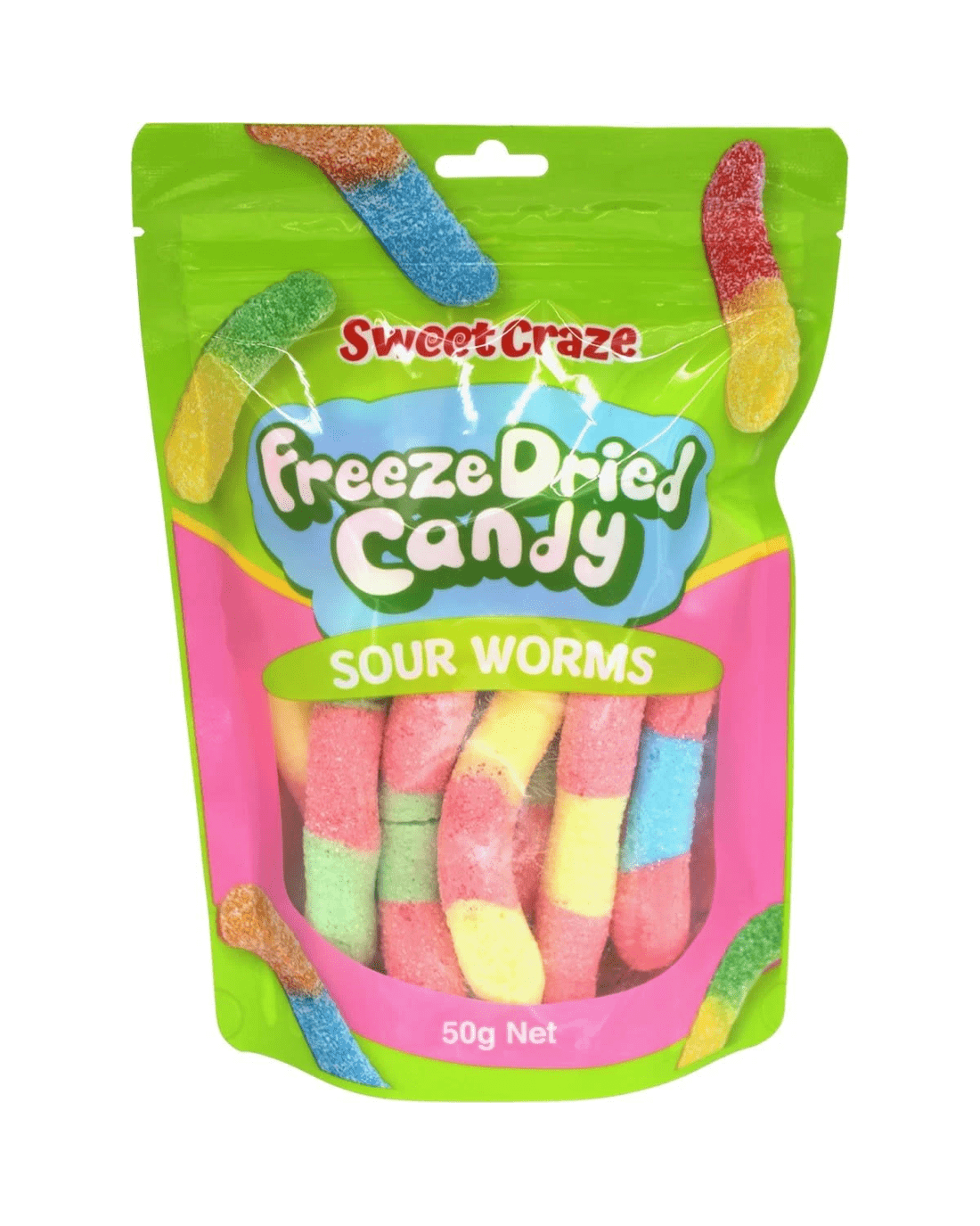 Sweet Craze Sour Worms Freeze Dried Candy 50g