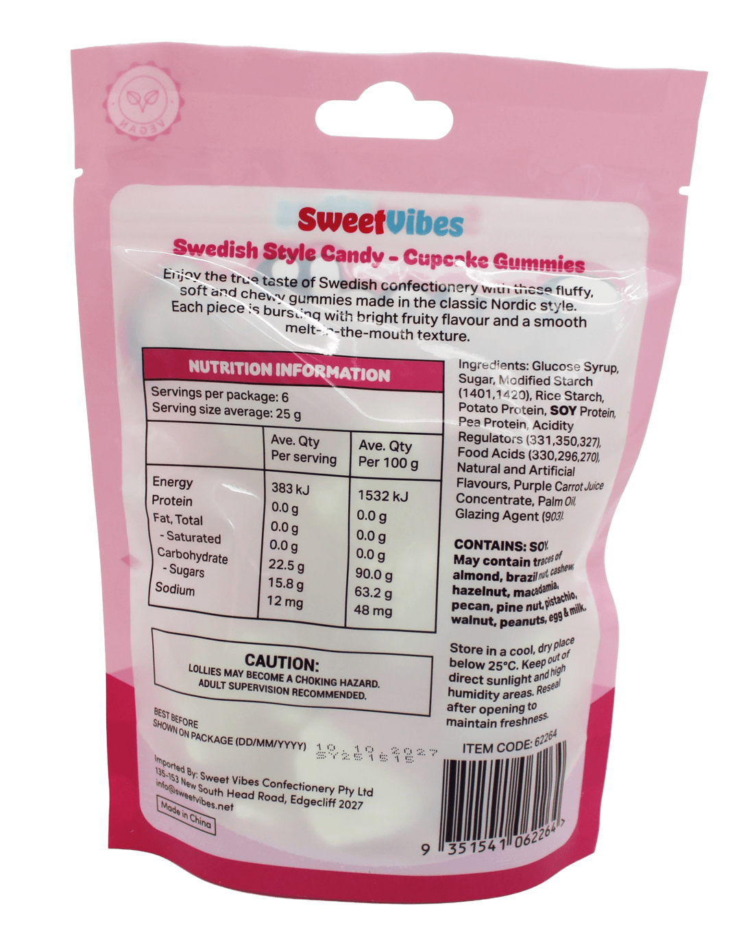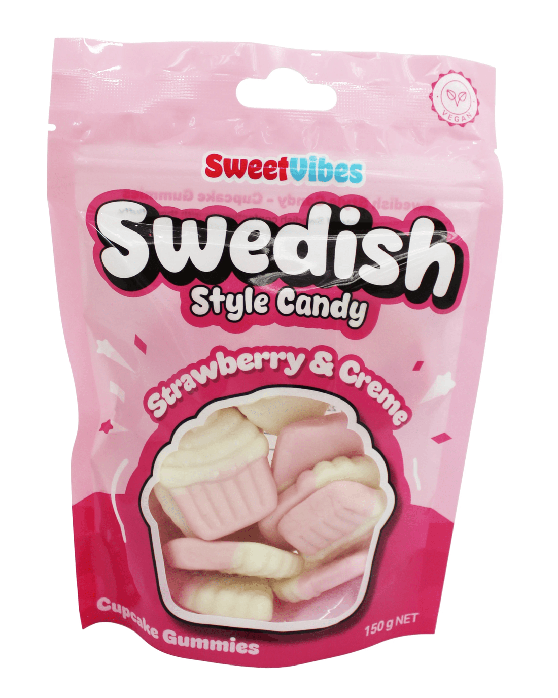 Sold by KmartSweet Vibes Swedish Style Candy Cupcake Gummies 150g - Strawberry and Creme