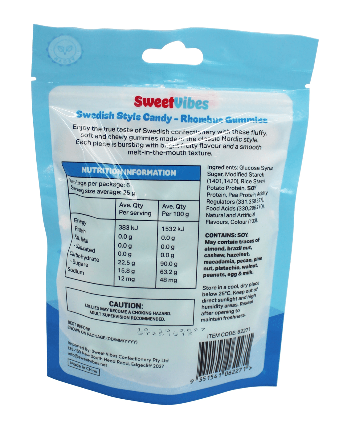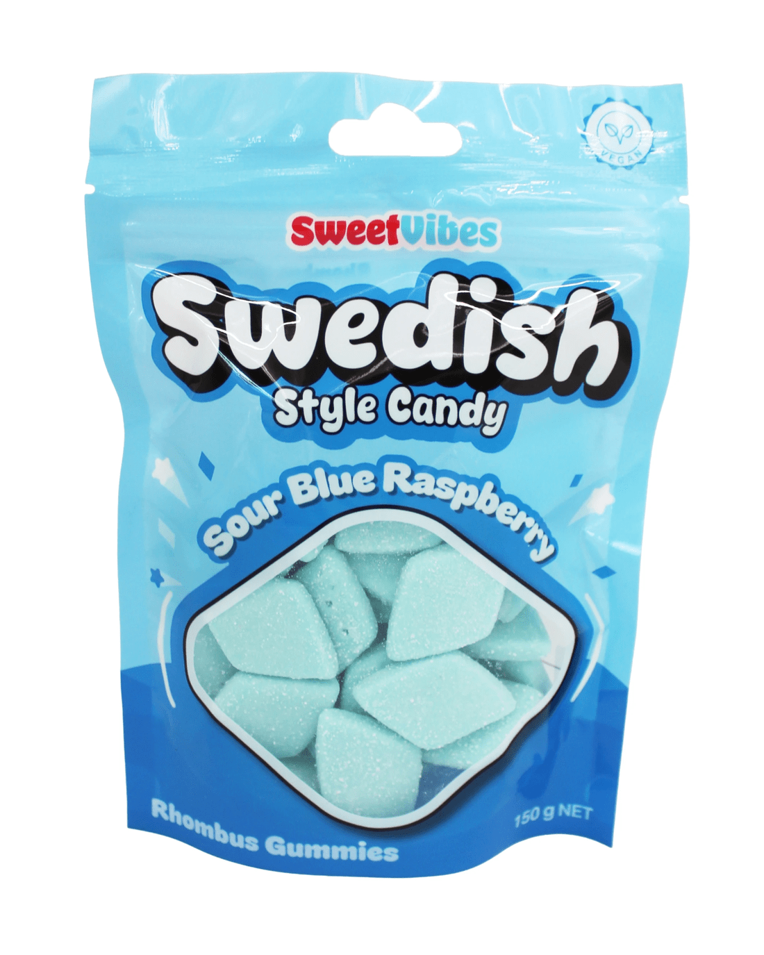 Sold by KmartSweet Vibes Swedish Style Candy Rhombus Gummies 150g - Sour Blue Raspberry