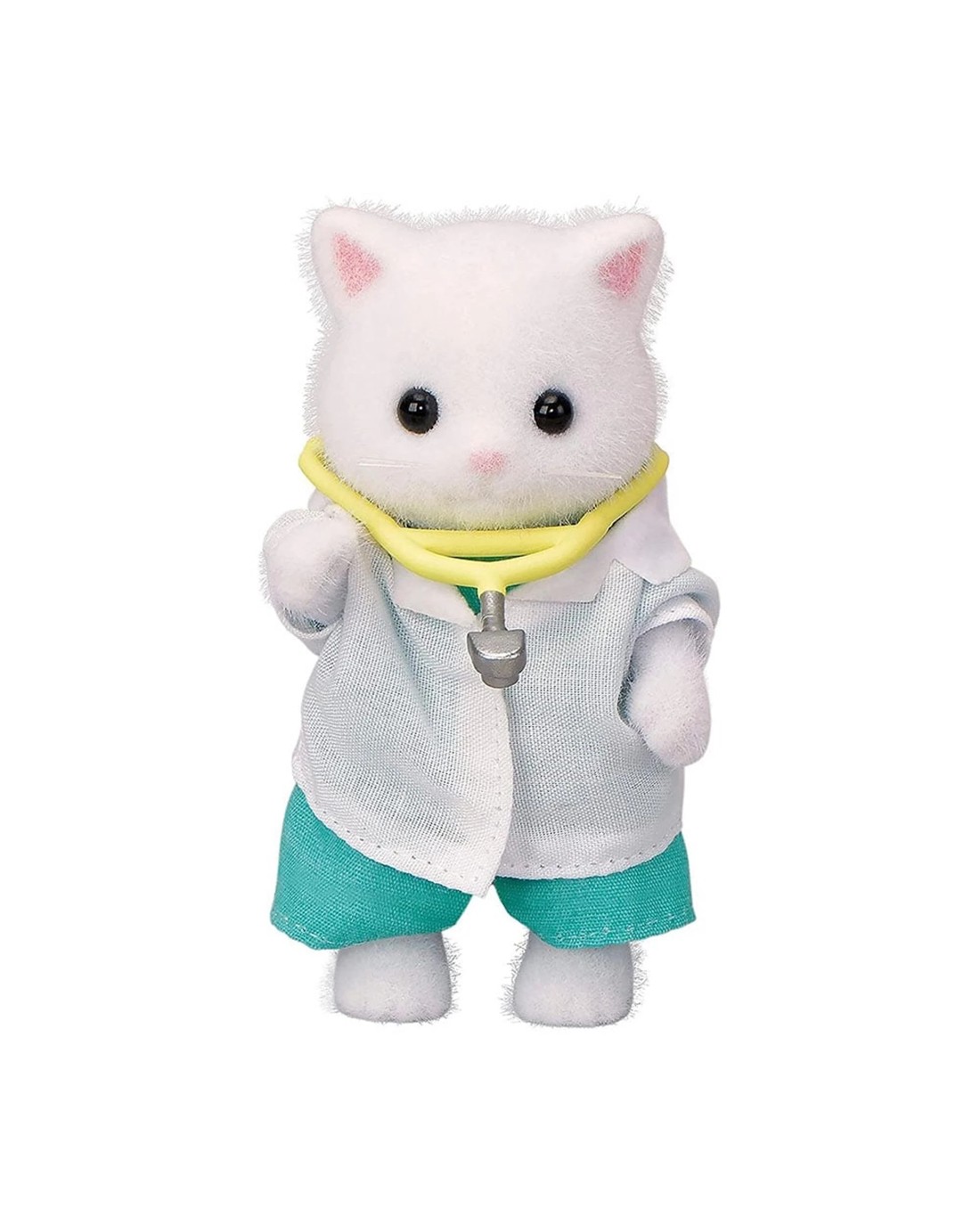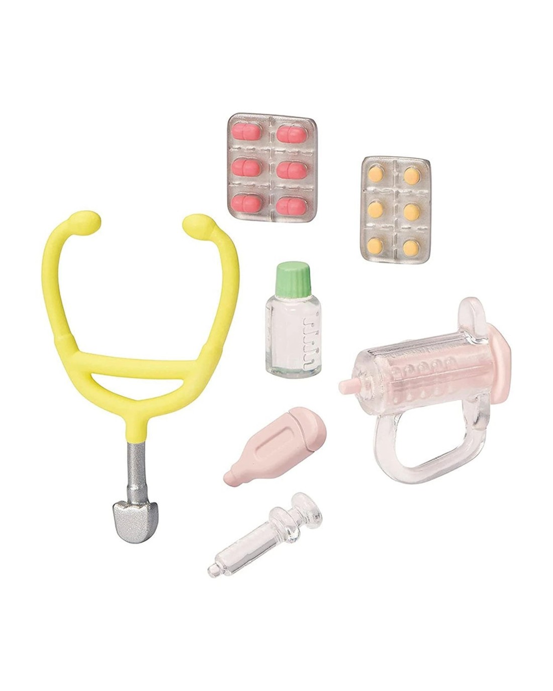 The Village Doctor Starter Set featuring everything you need to pretend playing doctor, including figure with white coat, check-up machine and other medical tools. Help keep healthy with the included syringes, stethoscope, bed, wheelchair, medicine and other accessories. The doctor's bag can be used to store the syringes, stethoscope and medicine. The plaster cast can git onto child figures. Includes Persian Cat mother, Doctor Dawn. Ages: 3+
