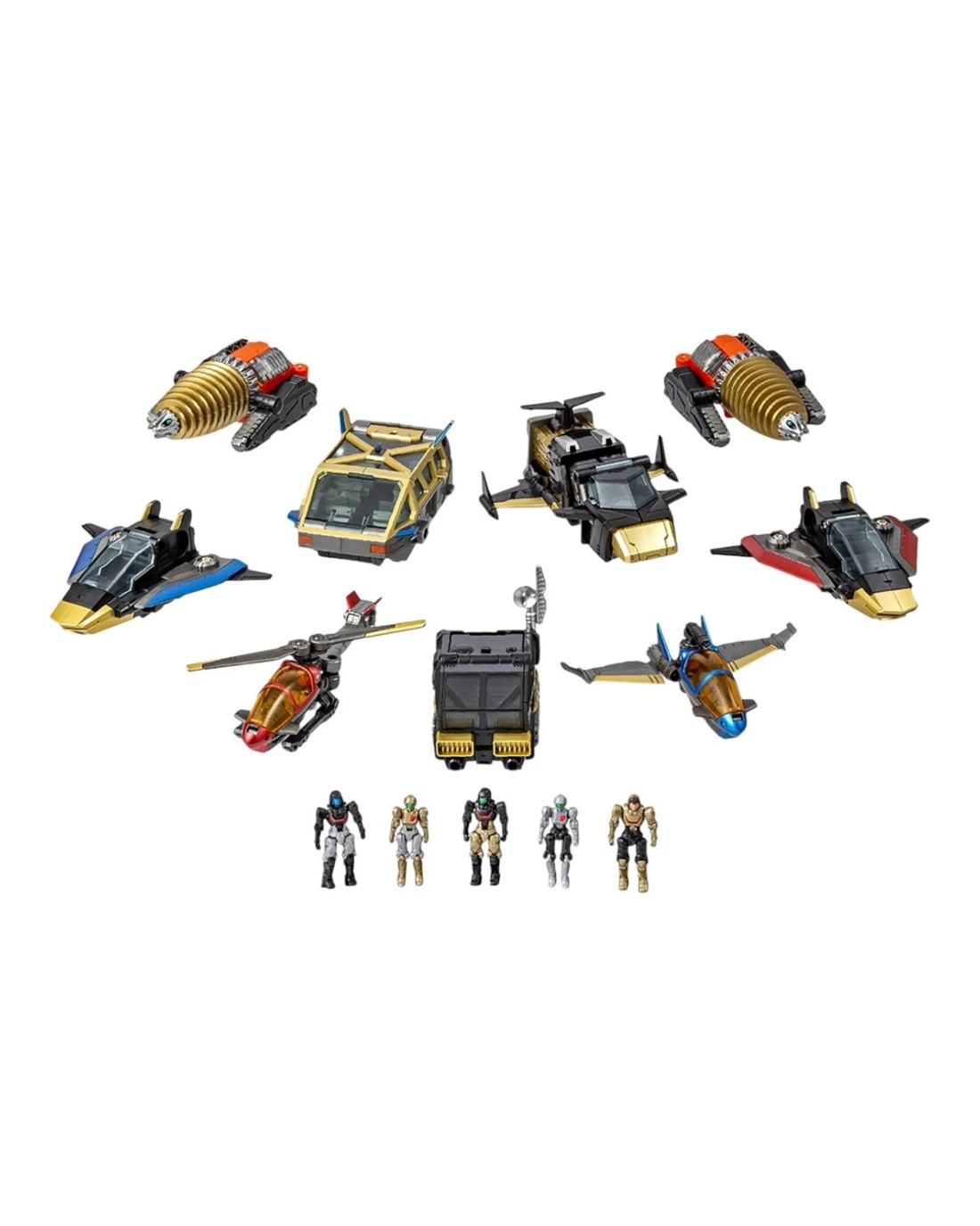 Power up your Royal Defender with an arsenal of carrier-based machines, each ready for combat or independent ops. The DA-120 Robot Base GX Royal Defender comes as a set with 9 shipborne machines to support its missions! Each shipborne machine can be piloted by a Diaclone team member. They can also operate on their own, and when paired with the DA-120 Robot Base GX Royal Defender, they can be stored in the hangar and used across a variety of battle scenarios. The set also comes with 5 Diaclone team members (3 Diaclone Team Members Ver. 2.0 and 2 Diaclone Female Team Members). Each of the 9 vehicle measures approximately W2.95” x H1.26” x D2.95” (W75mm x H32mm x D75mm). Ages 15 +