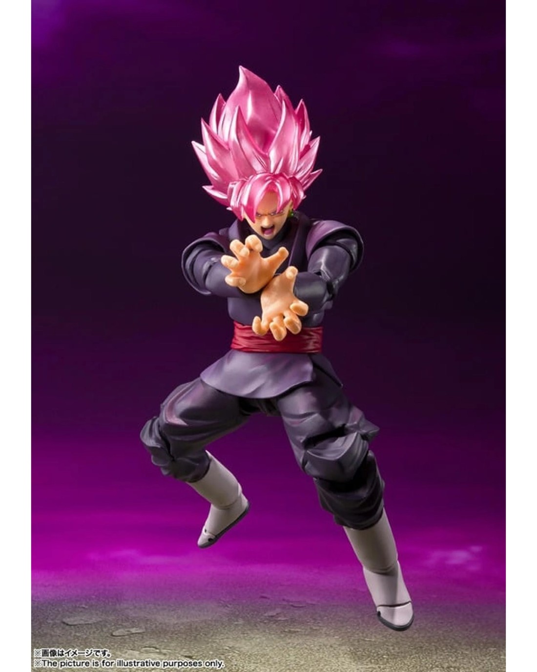 Goku Black - Super Saiyan Rose -, as seen in "Dragon Ball Super," joins S.H.Figuarts! Colored pink to evoke his ki-energized appearance, it's also articulated naturally so as to capture his trademark Kamehameha pose! Ages 15 +
