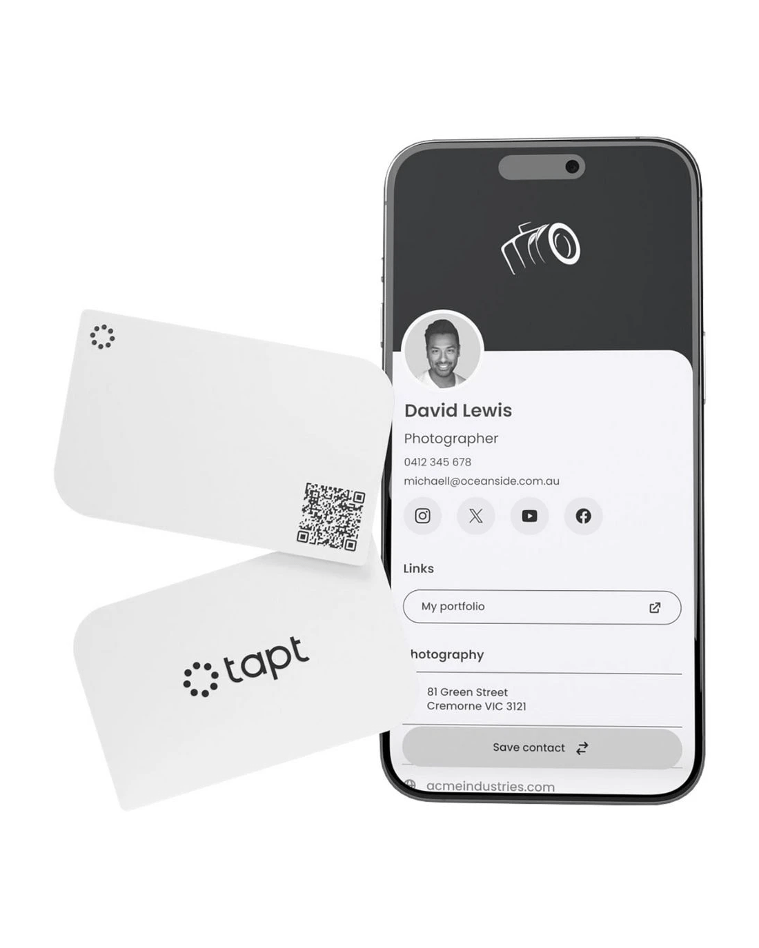 A Tapt Lite is a digital business card that allows the sharing of business information by simply tapping your card against a smartphone or a mobile device to share your contact details. A Tapt Lite has minimal amounts of customisation to the physical artwork, however comes with the same cutting edge technology and ability to completely edit your digital profile.