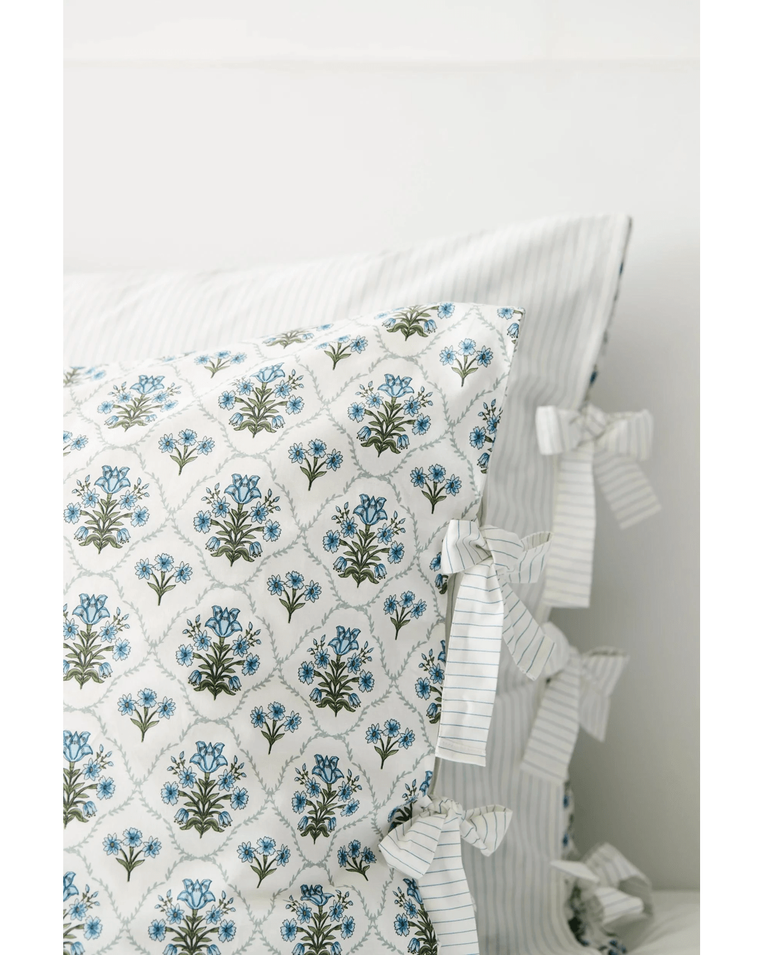 Bring new life to your bedtime routine with the Adeline Australian Cotton Floral European Pillowcase. Created from Australian cotton, this pillowcase offers a gentle and soft feel against your skin, helping you relax comfortably all year round. The front features a cheerful floral design while the reverse boasts subtle pinstripes, giving you two stylish options in one. With handy tie closures, switching pillowcases is a breeze, and the machine washable fabric saves time on laundry days. Treat yourself to this inviting update and enjoy the charm and convenience it adds to your bedroom. Let Adeline make your resting space warm, fresh, and welcoming.