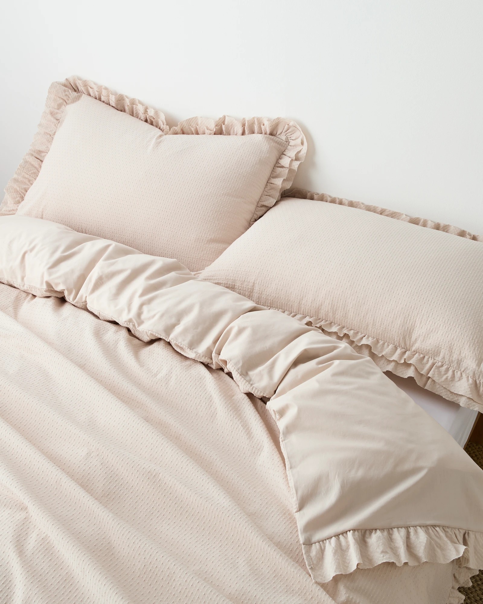 Target Australian Cotton Celine Jacquard Double Ruffle Quilt Cover Set - Queen Bed - Natural