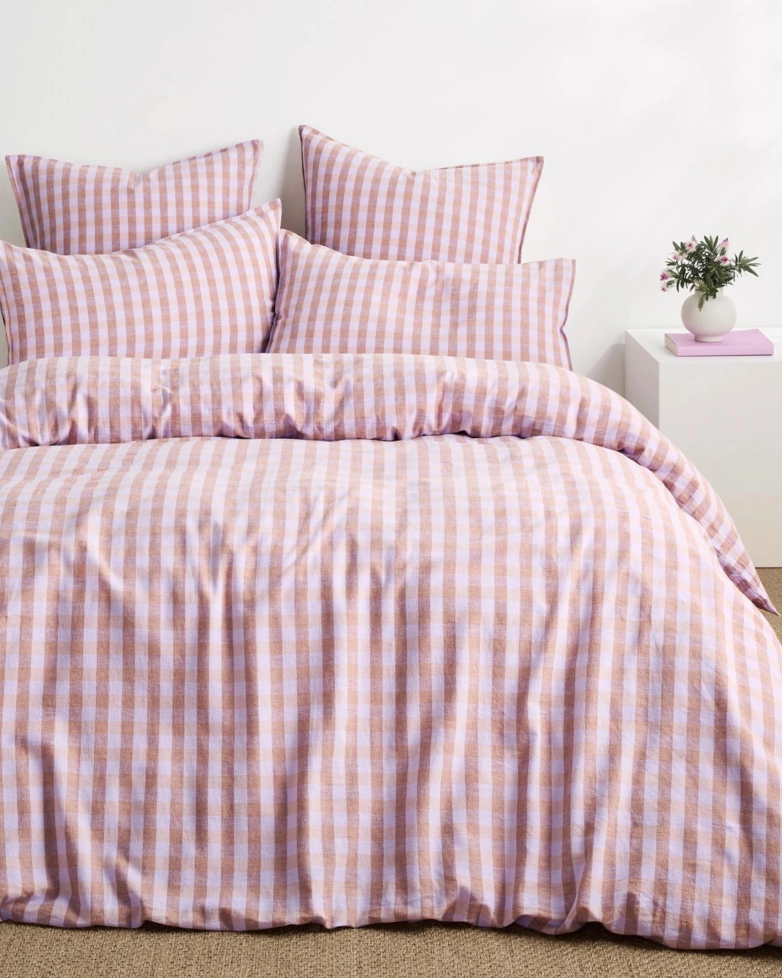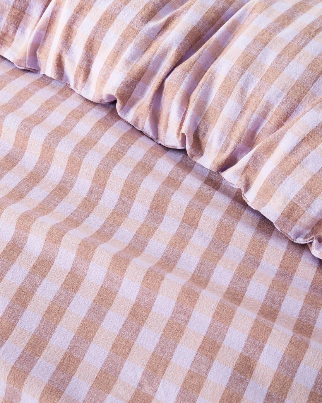 Target Darby Gingham Linen/Cotton Quilt Cover Set - King Bed - Purple