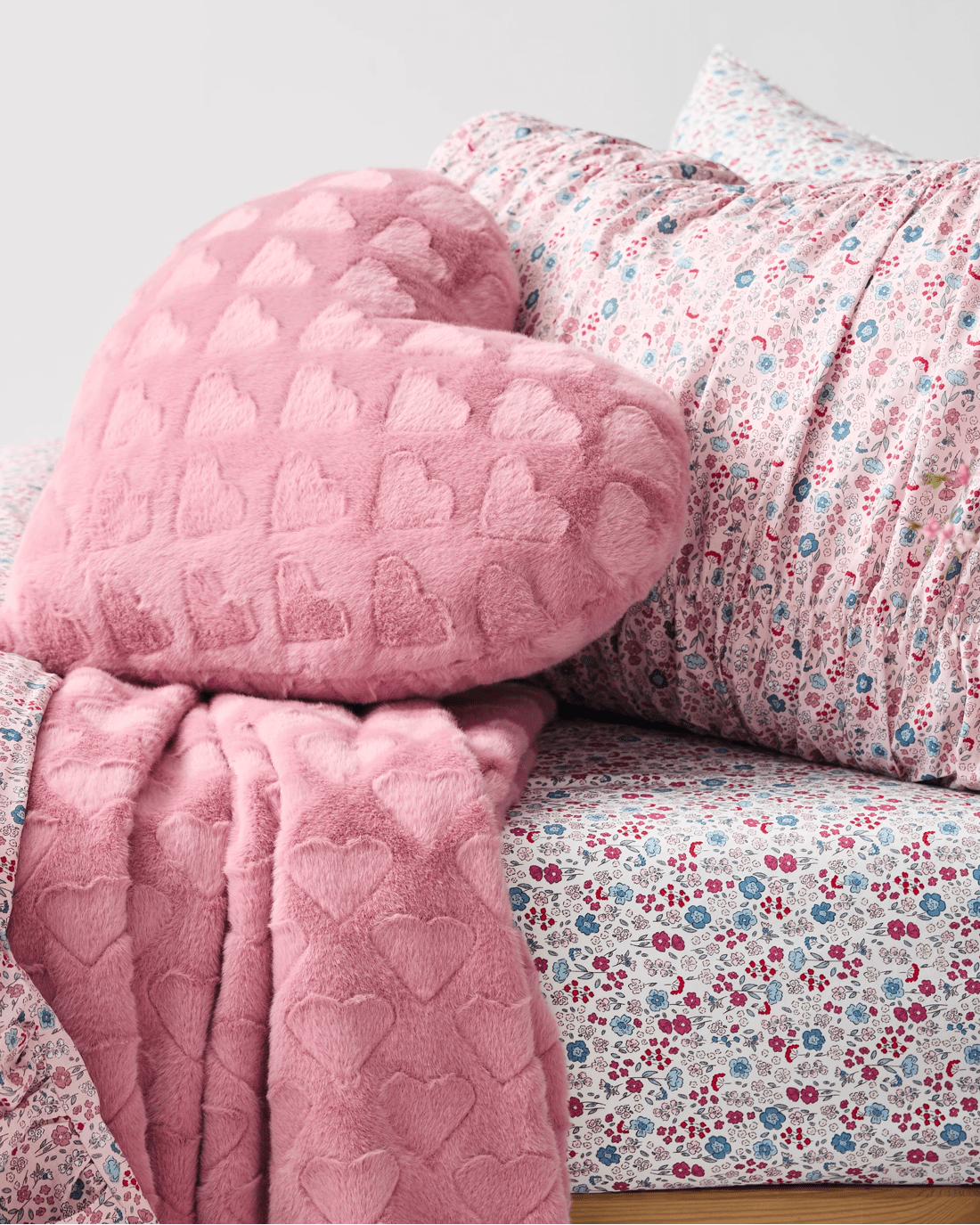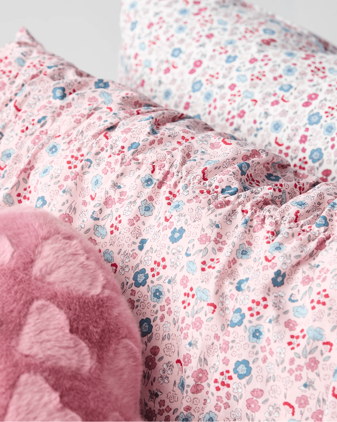 Target Evie Ditsy Floral Ruched Australian Cotton Kids Quilt Cover Set - Queen Bed - Pink