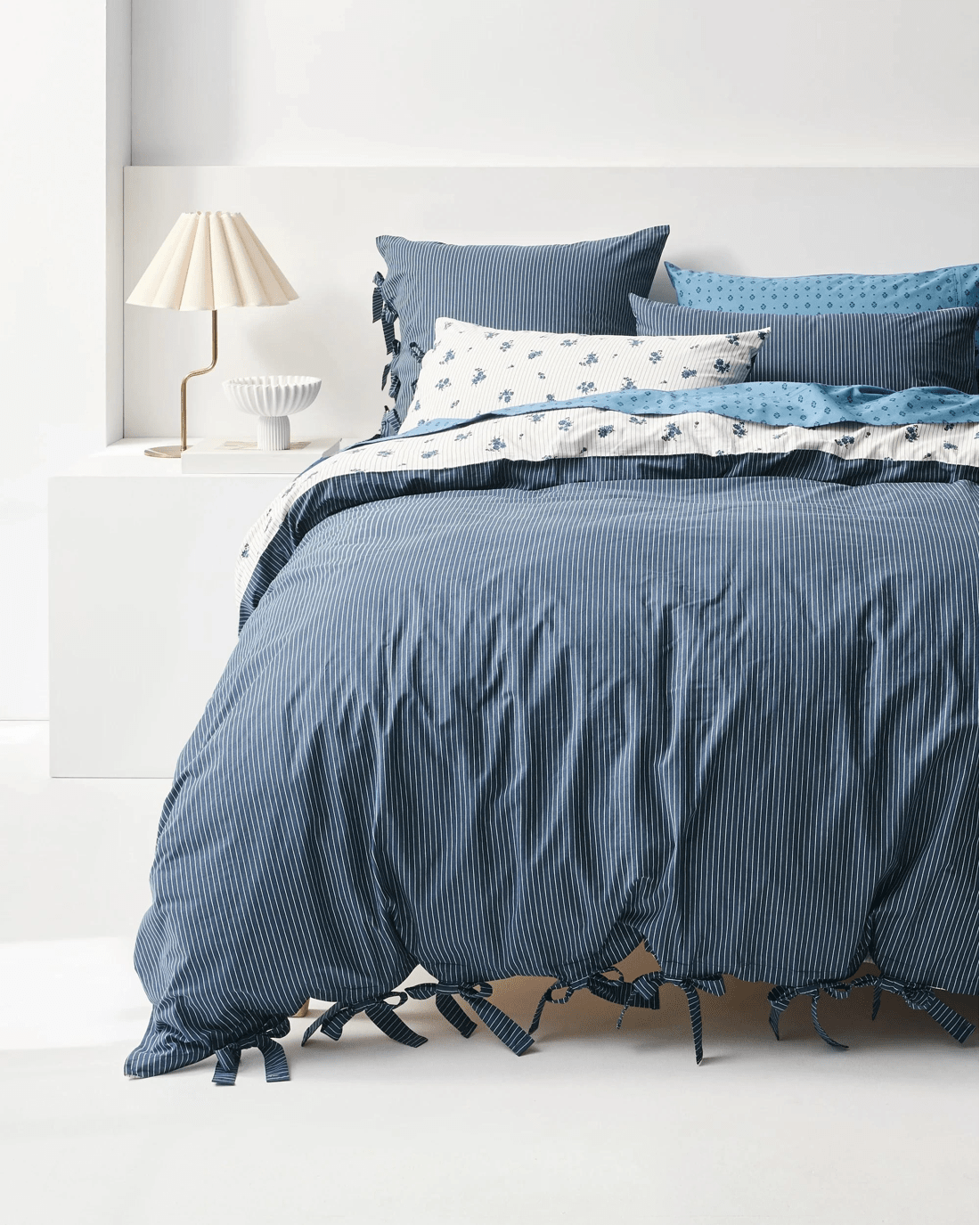 Bring fresh style and comfort to your bedroom with the Ezra Floral Pinstripe Australian Cotton Quilt Cover Set. Made from soft Australian cotton and featuring a smooth 250 thread count, this set is designed for a cosy and restful night’s sleep. The delightful combination of floral and pinstripe patterns adds a lively character to your bedding, giving your space a welcoming and stylish update. With practical reversible tie closures, changing your quilt is simple and hassle-free. Mix and match with your choice of pillowcases to create a unique look that’s truly yours. Refresh your room and enjoy blissful sleep with this inviting quilt cover set – make it yours and feel the difference each night.