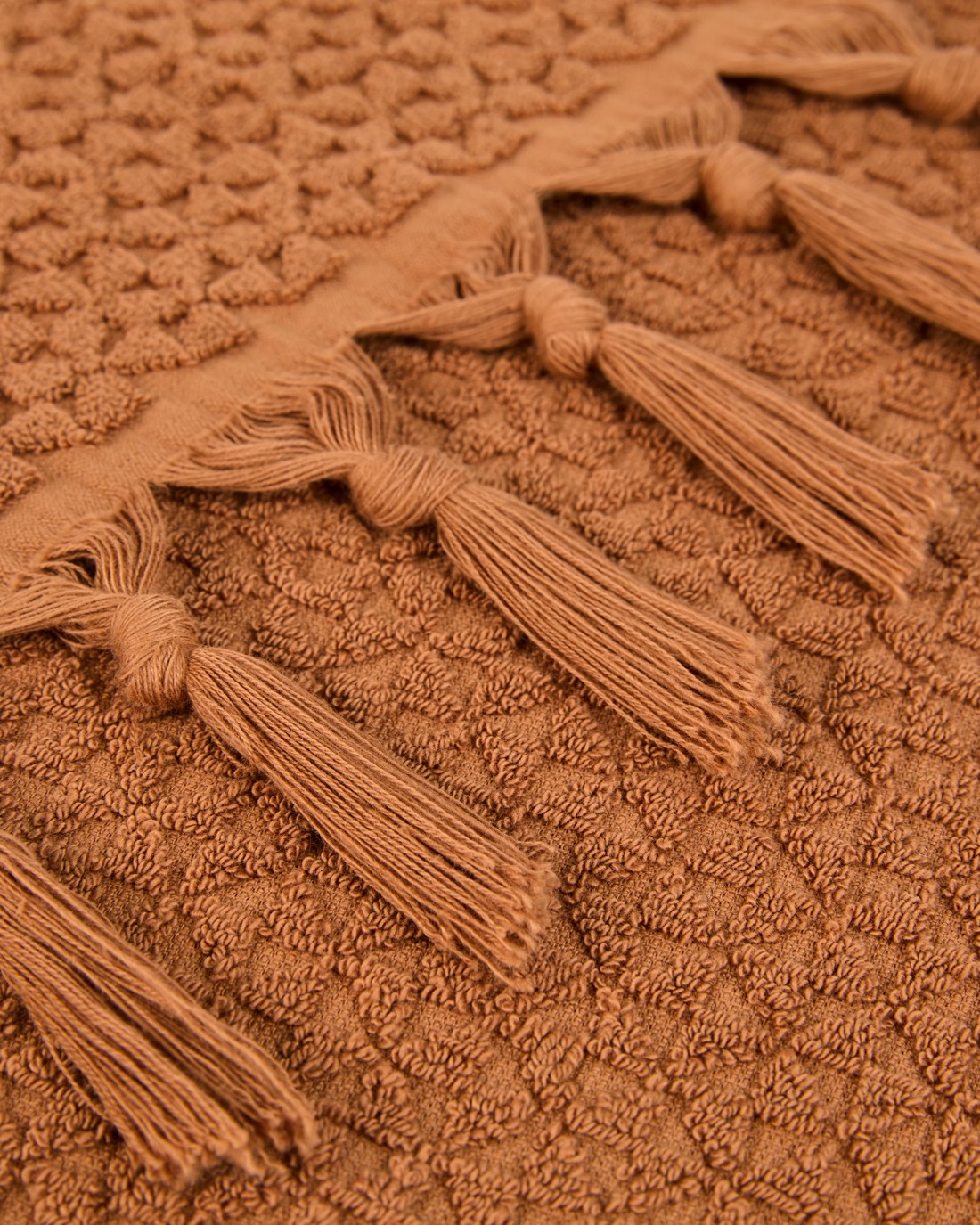 Textured with knotted 9cm fringe trim