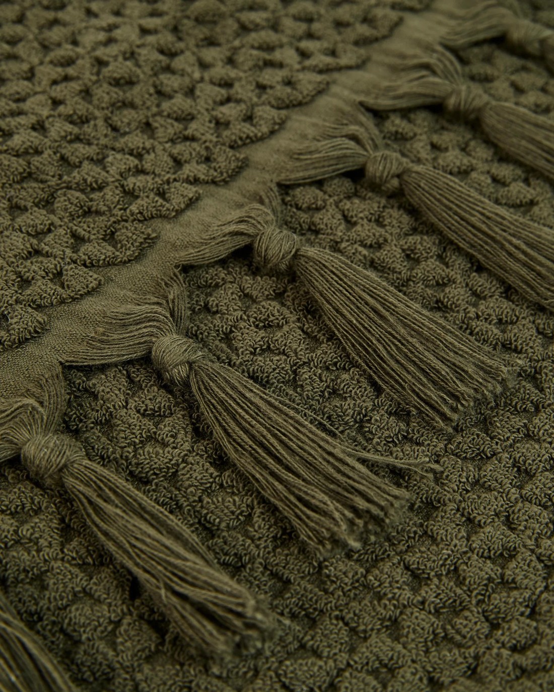 Textured with knotted 9cm fringe trim
