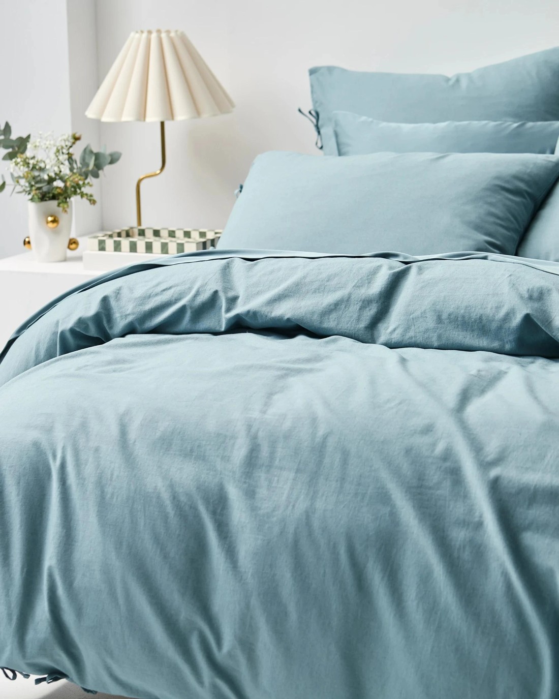 Make your bedroom feel instantly inviting with the Laynie Linen Cotton Quilt Cover Set. Soft and breathable, it is designed for year round comfort and easy care, so you can spend less time worrying about your bedding. Seamlessly blending style and practicality, it features a lovely Mist hue that complements any room. Whether you are curling up in winter or staying cool in summer, this quilt cover set has you covered. Elevate your bedroom and unwind in comfort every night.Features