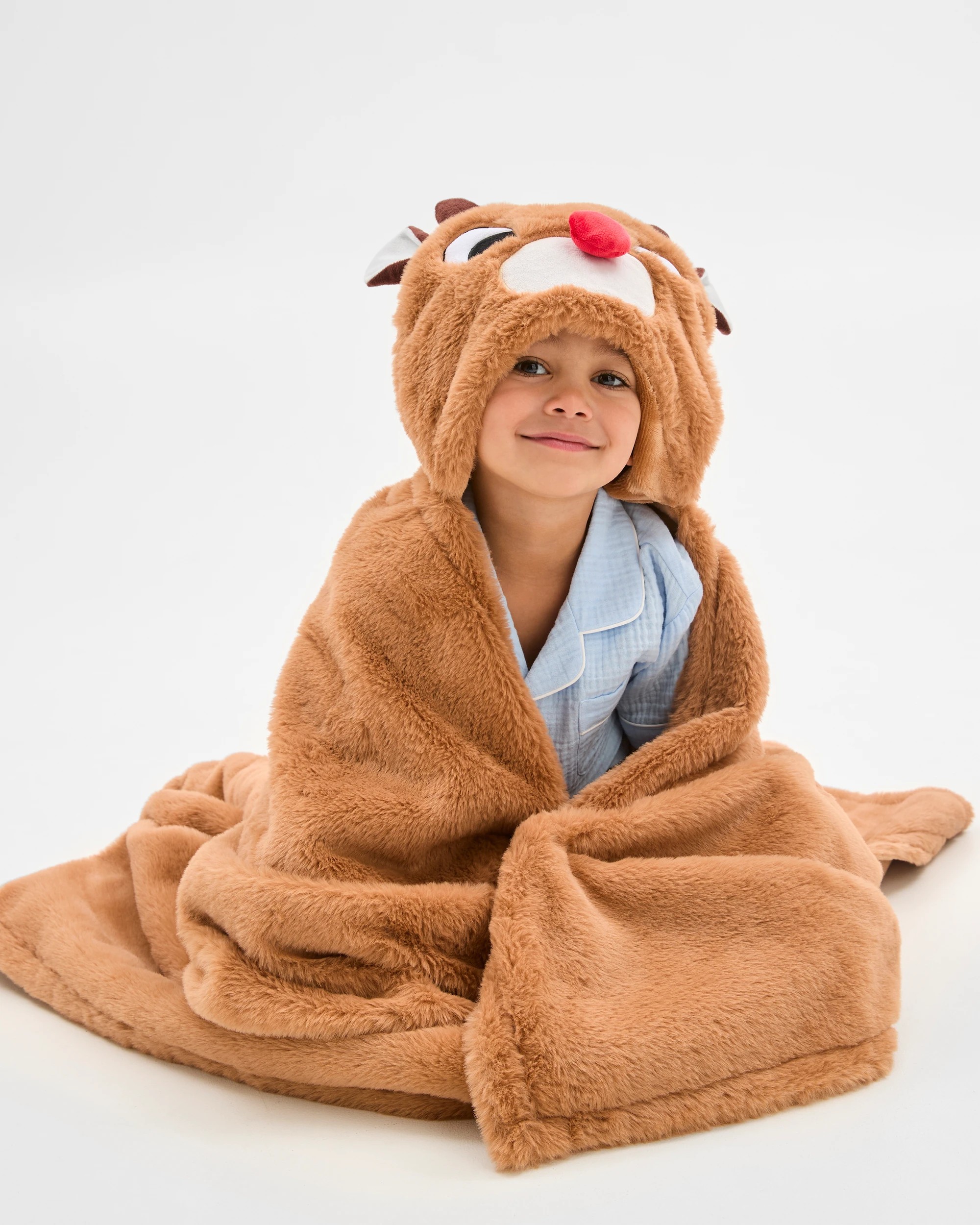 Target Rudolph Christmas Hooded Blanket Throw - Queen Bed - Brown