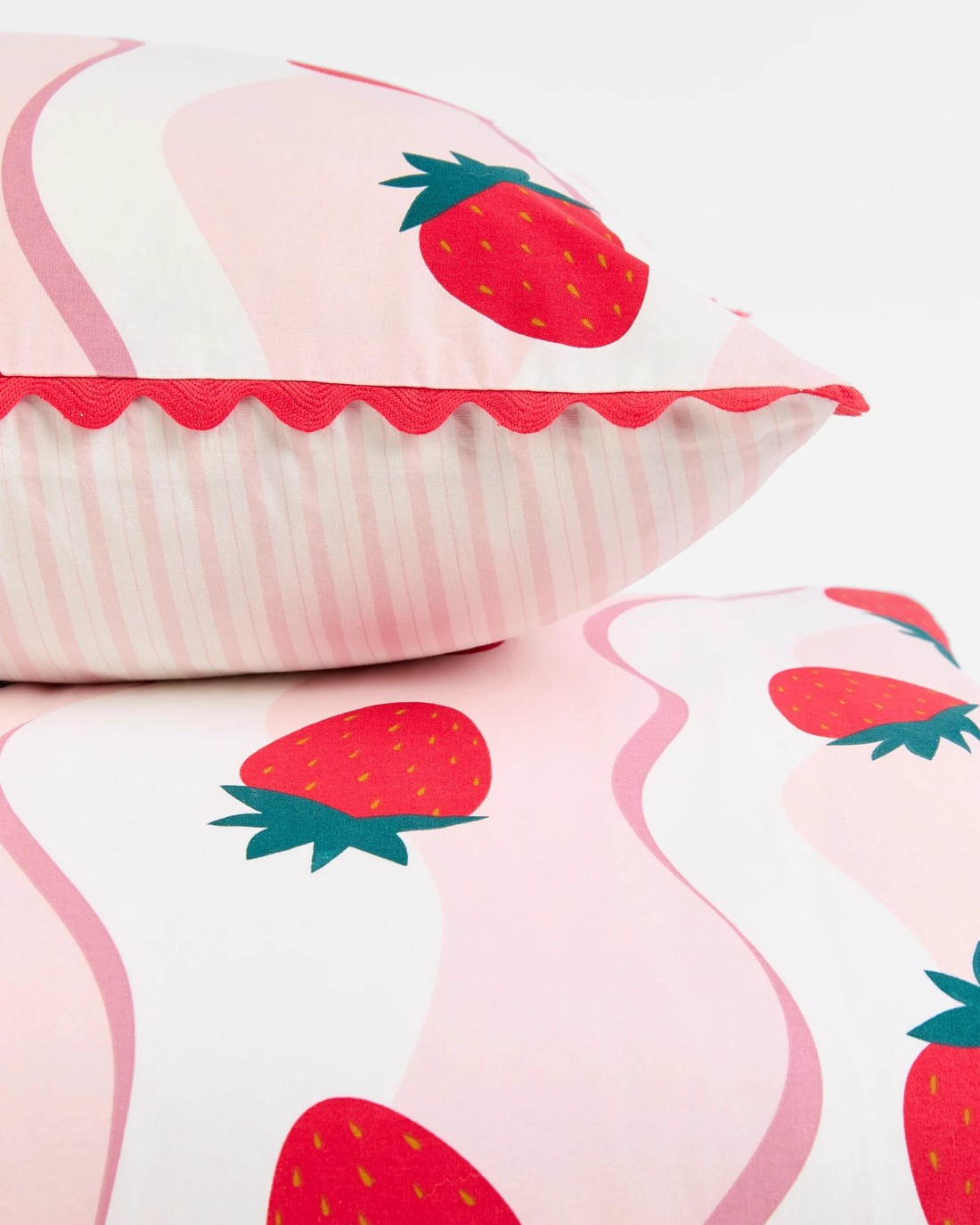 Brighten up your child’s bedroom with the delightful Strawberry Textured Kids Quilt Cover Set. Designed with a playful strawberry theme and unique scalloped edges, this set instantly creates a cosy, cheerful atmosphere your little one will love. The soft feel is wonderfully inviting, thanks to the gentle percale weave. Thoughtfully reversible, you can easily refresh the look to keep things exciting. The quilt cover is simple to care for, making it a great choice for busy households looking for year-round comfort. Treat your child to a quilt cover set that brings joy to bedtime and discover how easy bedtime routines can become a highlight of the day. Give their room a fresh update and create a space they'll cherish. Order yours today and watch bedtime become their favourite part of the day!