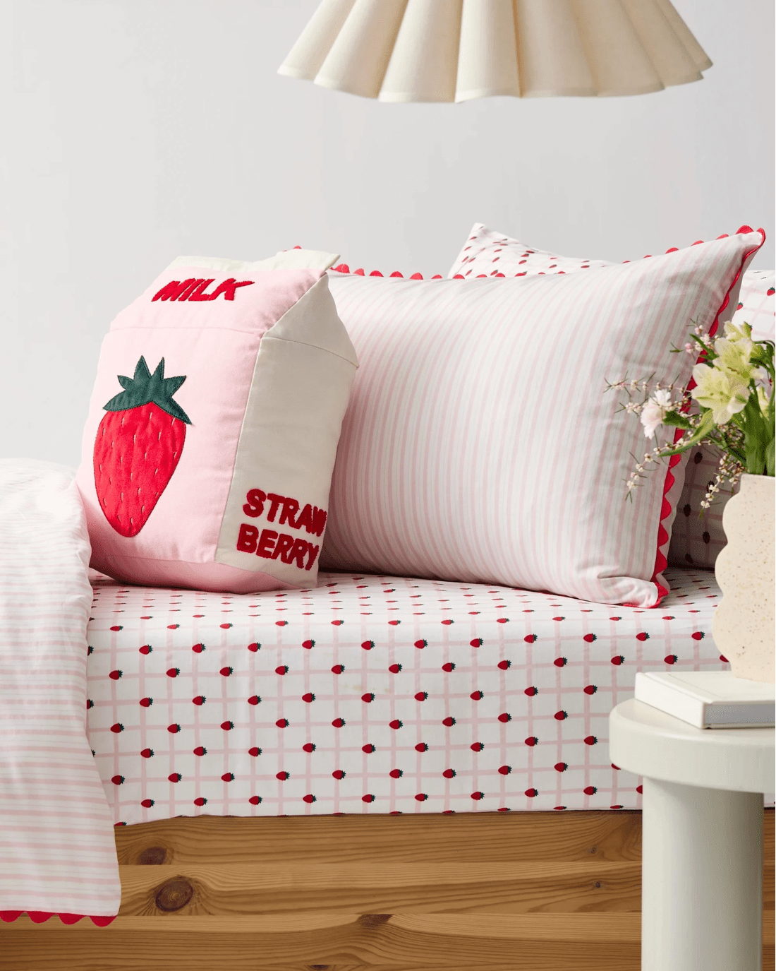 Brighten up your child’s bedroom with the delightful Strawberry Textured Kids Quilt Cover Set. Designed with a playful strawberry theme and unique scalloped edges, this set instantly creates a cosy, cheerful atmosphere your little one will love. The soft feel is wonderfully inviting, thanks to the gentle percale weave. Thoughtfully reversible, you can easily refresh the look to keep things exciting. The quilt cover is simple to care for, making it a great choice for busy households looking for year-round comfort. Treat your child to a quilt cover set that brings joy to bedtime and discover how easy bedtime routines can become a highlight of the day. Give their room a fresh update and create a space they'll cherish. Order yours today and watch bedtime become their favourite part of the day!