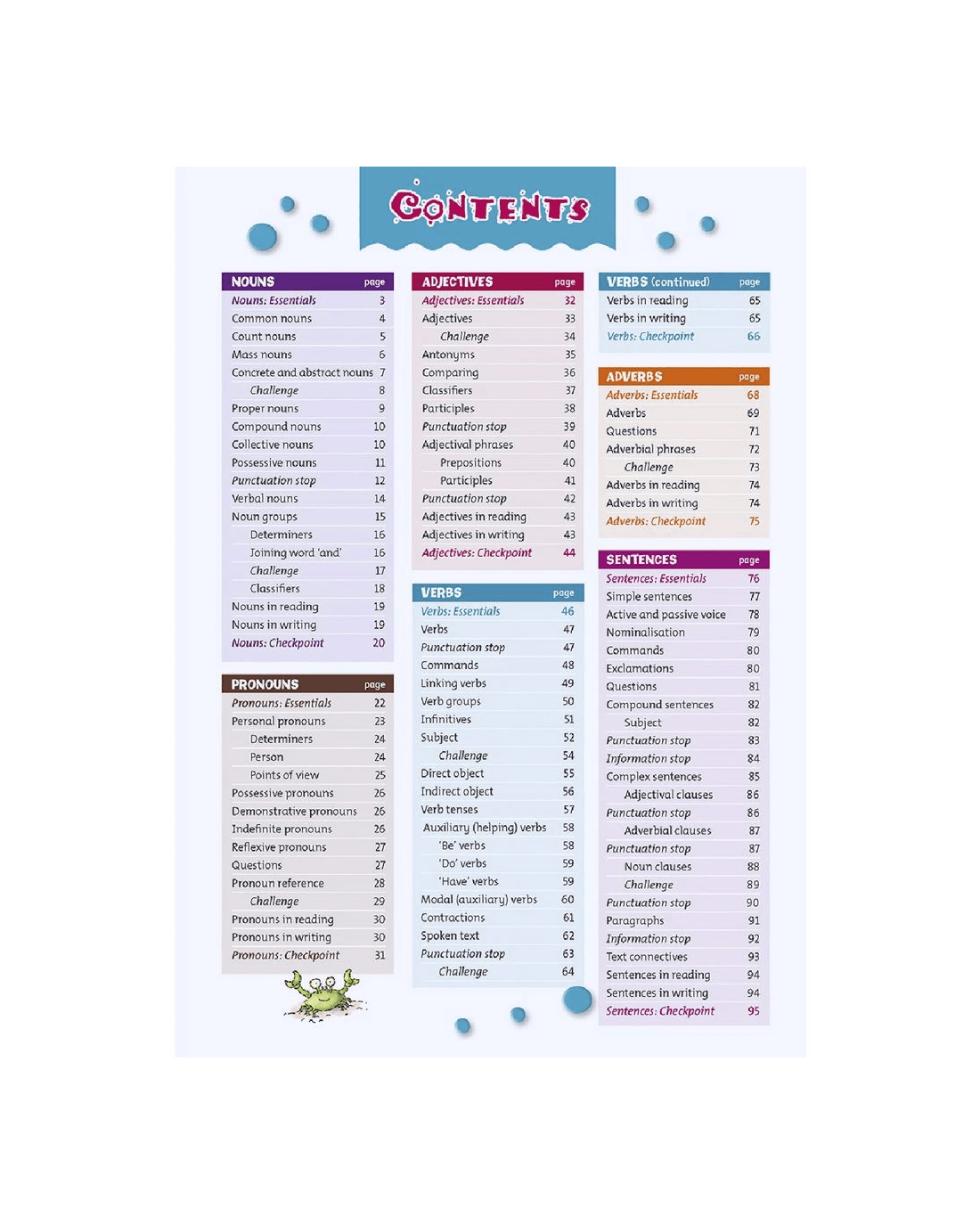 This Targeting Grammar Activity Book is an ideal resource to aid in teaching basic grammar conventions at a year 5 level. The book contains a step by step process to help learners discover nouns, pronouns, adjectives, verbs and adverbs and understand how these elements fit into reading and writing.