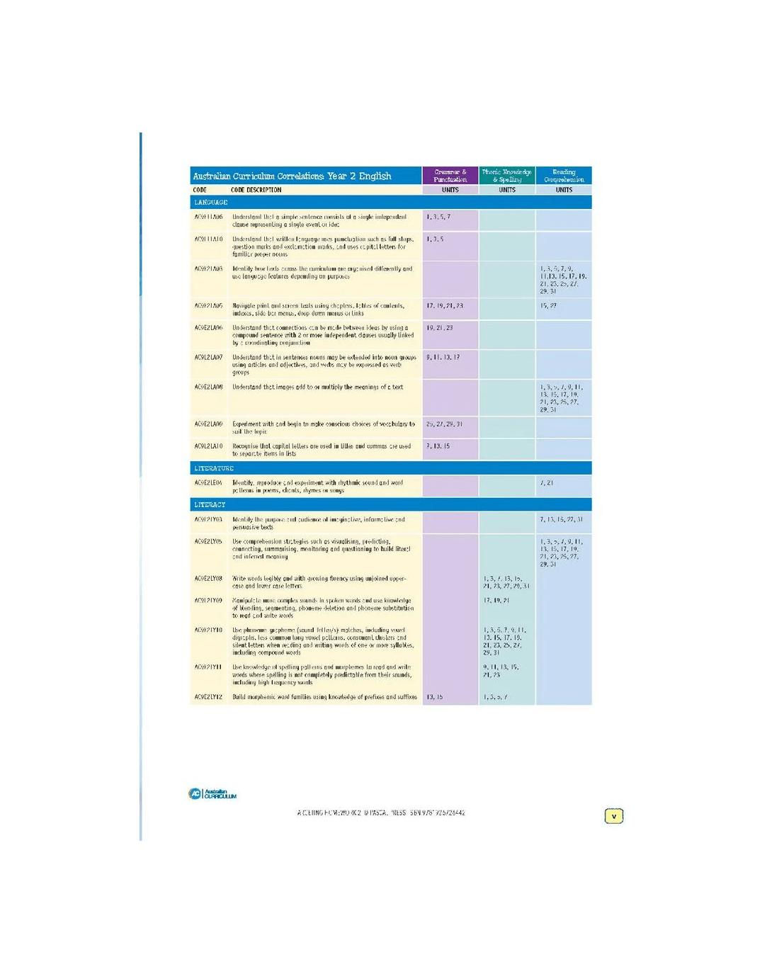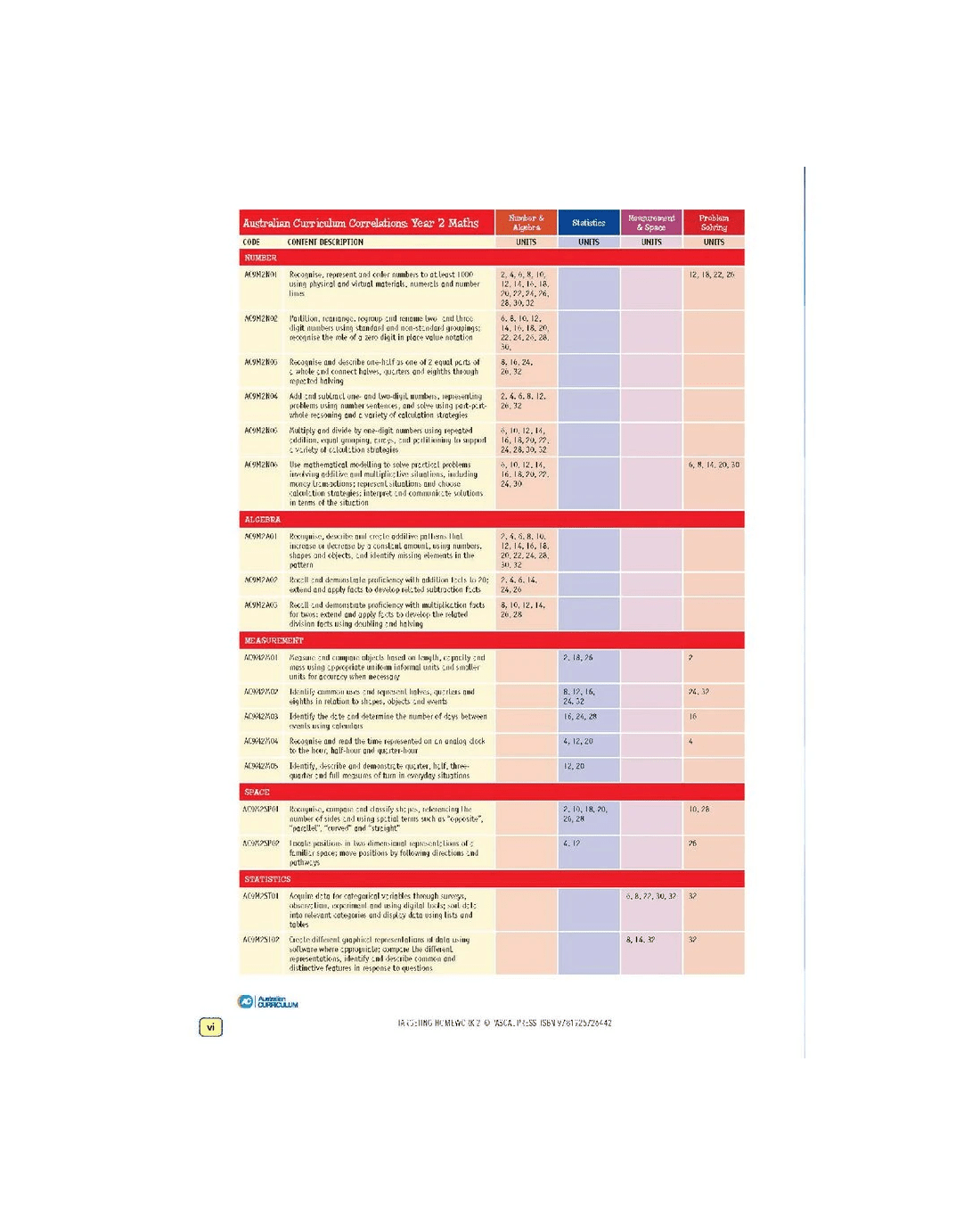 - ACARA Curriculum Codes and their descriptions are provided for every unit.