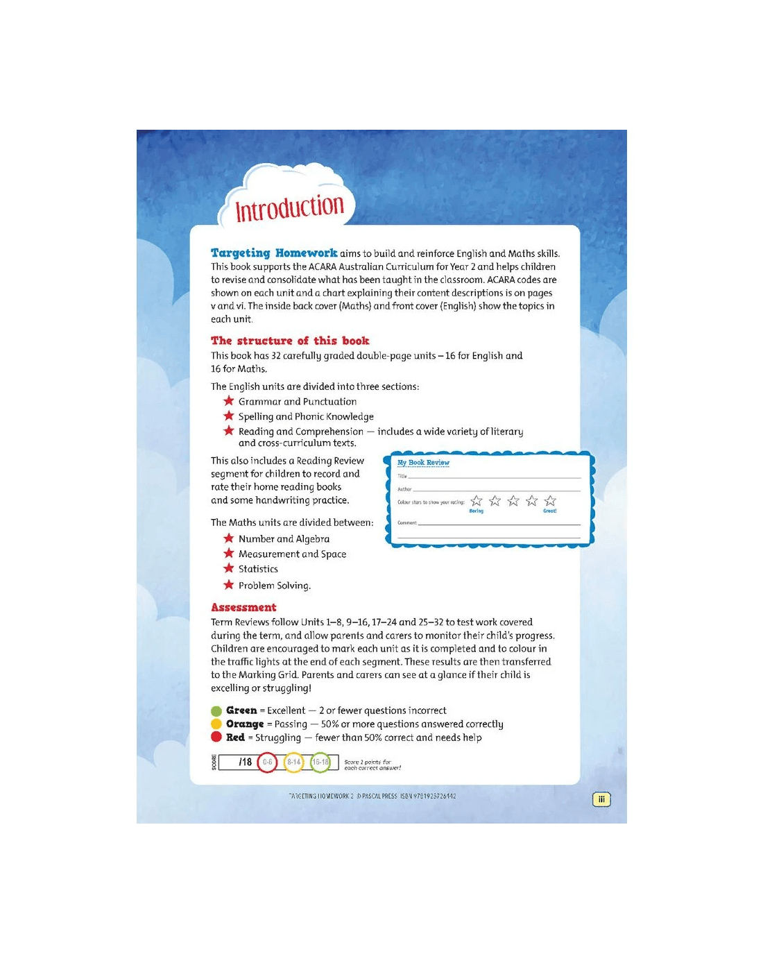 - There are Term Reviews where each of the 8 units are followed by a term review test for further assessment, allowing parents, carers and teachers to use these results to monitor progress and identify low performing areas.