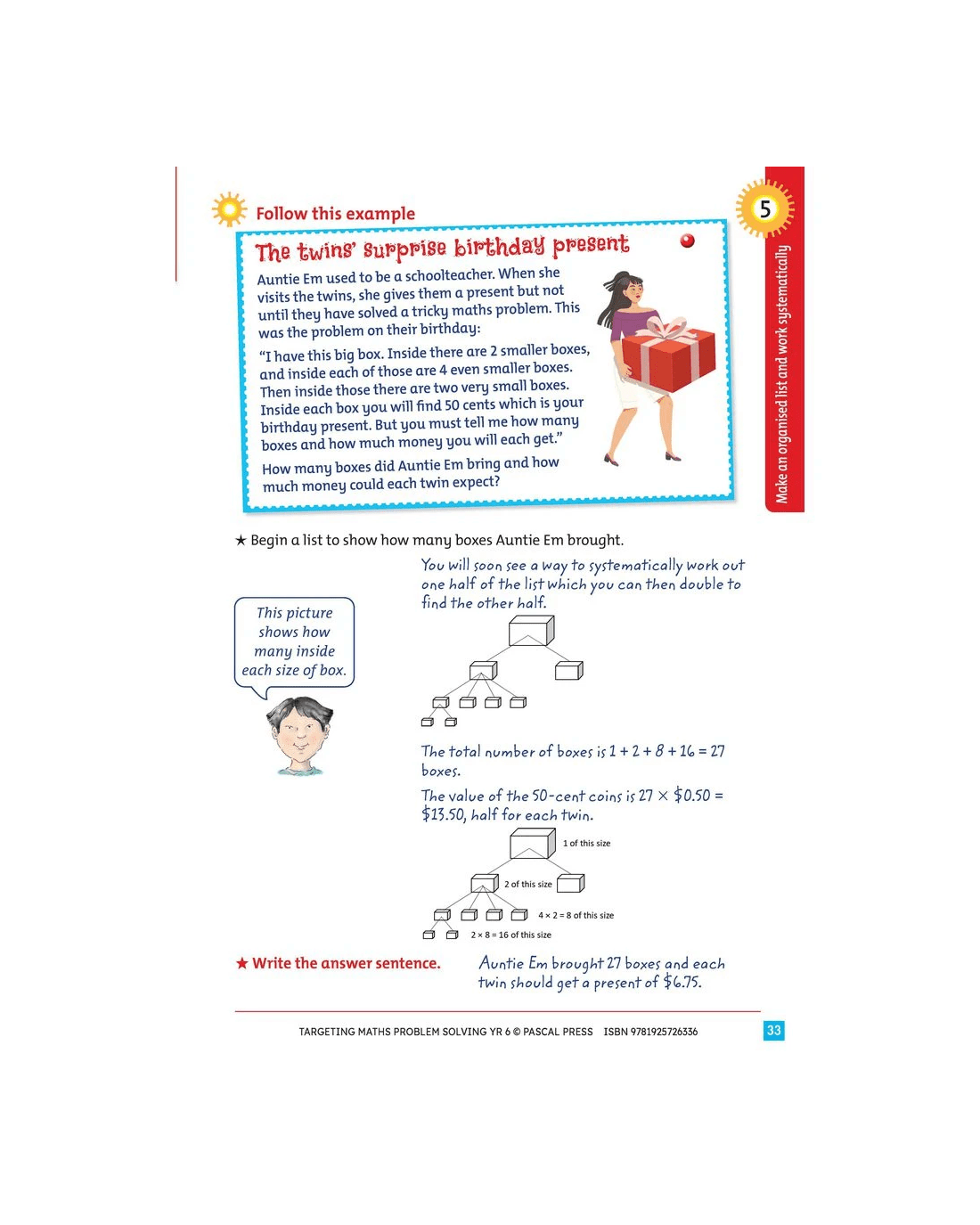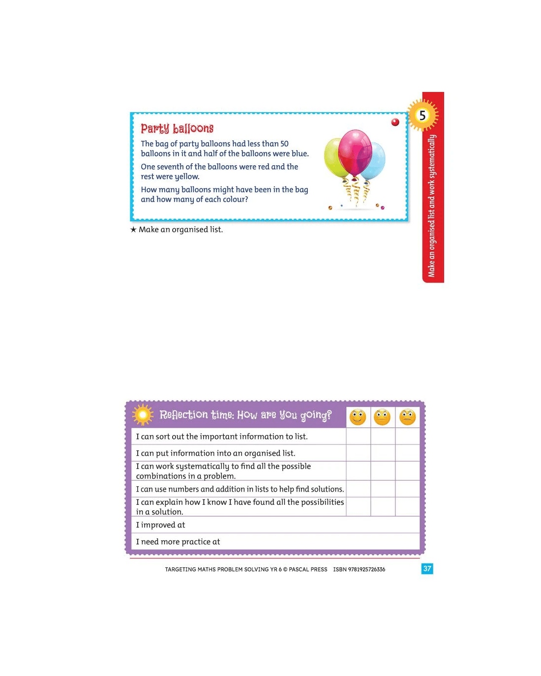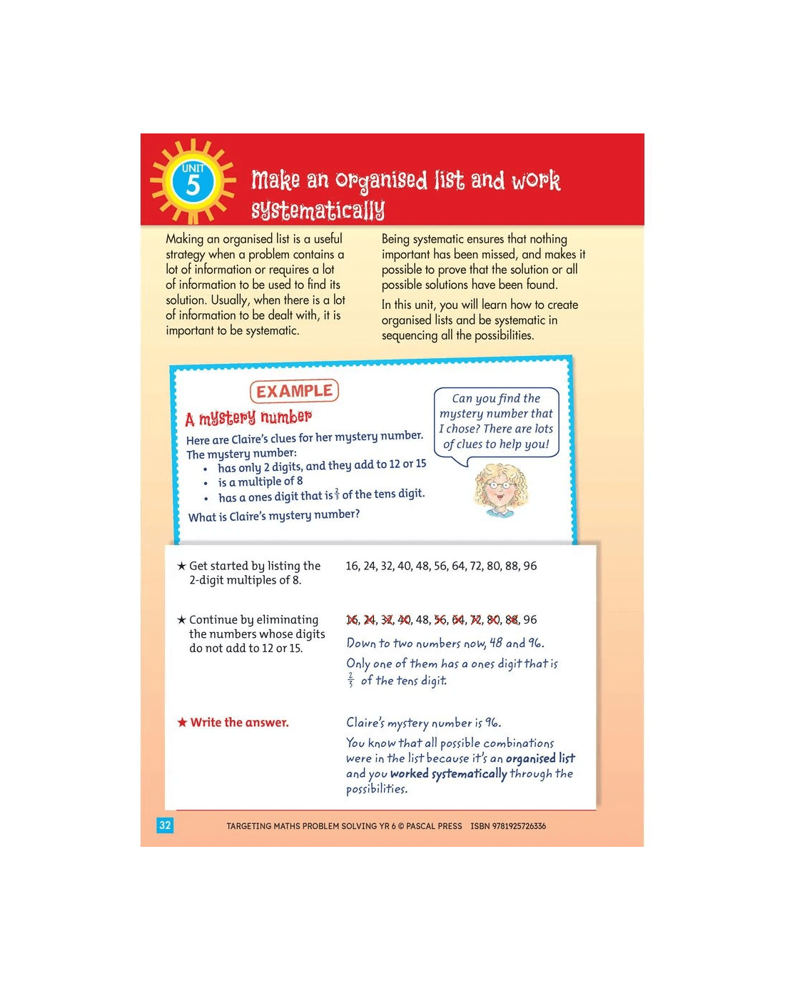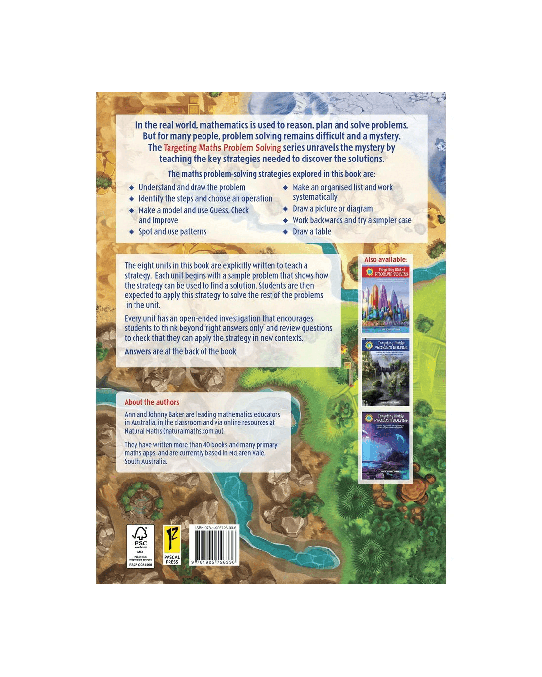 This Targeting Maths Problem Solving workbook has been written that helps unravel the mysteries involved in real world problem solving by teaching the key strategies needed to discover the solutions. The eight units in this book are explicitly written to teach a strategy, with each unit beginning with a sample problem that shows how the strategy can be used to find a solution. Students are then expected to apply this strategy to solve the rest of the problems in the unit.