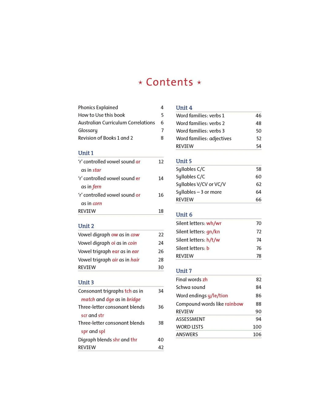 - The back section of the book provides assessment for all the letters and sounds, Word Lists for each unit, and high frequency Sight Word cards that can be photocopied and laminated as flashcards Answers.