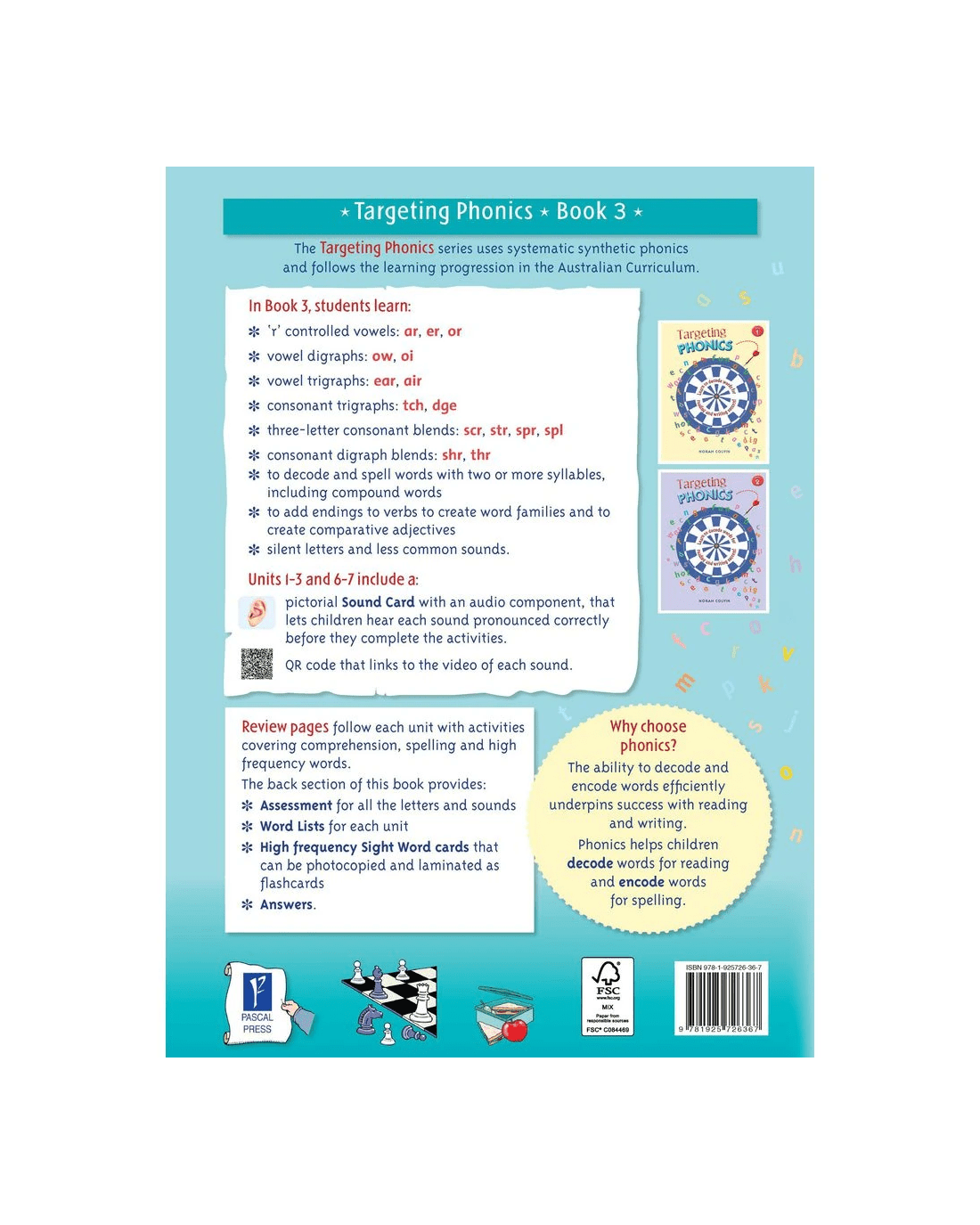 The Targeting Phonics series uses systematic synthetic phonics and follows the learning progression in the Australian Curriculum. A unique feature of this series is the sound card page that links via a QR code to mini videos of the cards with an audio component to assist with correct pronunciation.