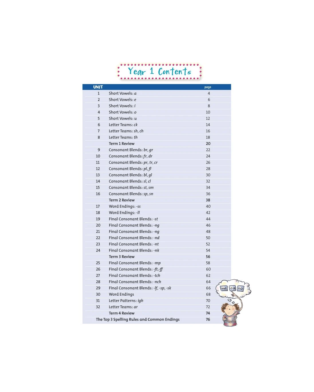 • This book comes with 32 weekly units (8 per term), each with two spelling word lists and the following activities: See & Say, Look & Learn and Memory Training.