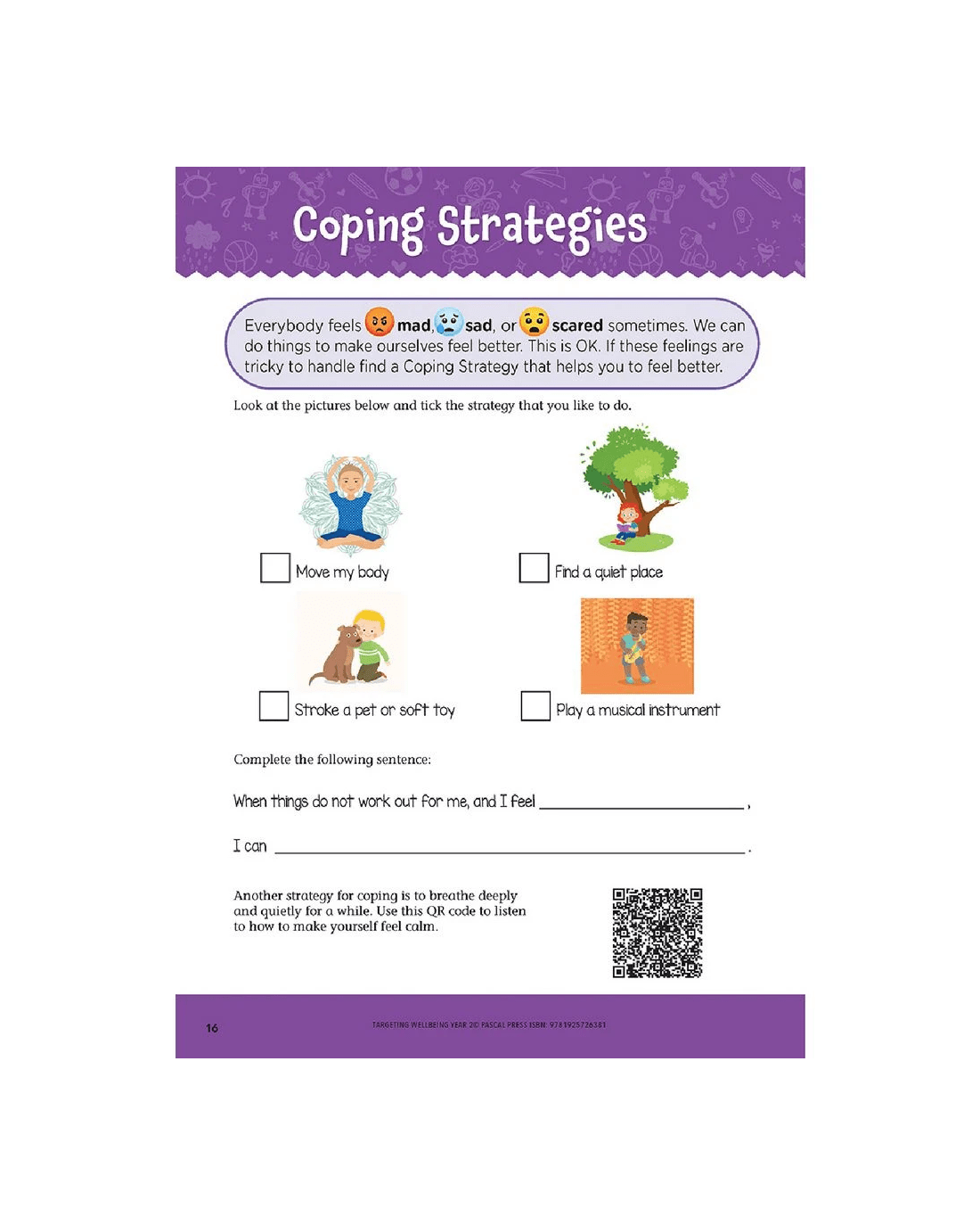 - Included in the title are QR codes linked to an audio track with a meditation that your child can listen to when they want to relax and let go of troublesome thoughts.