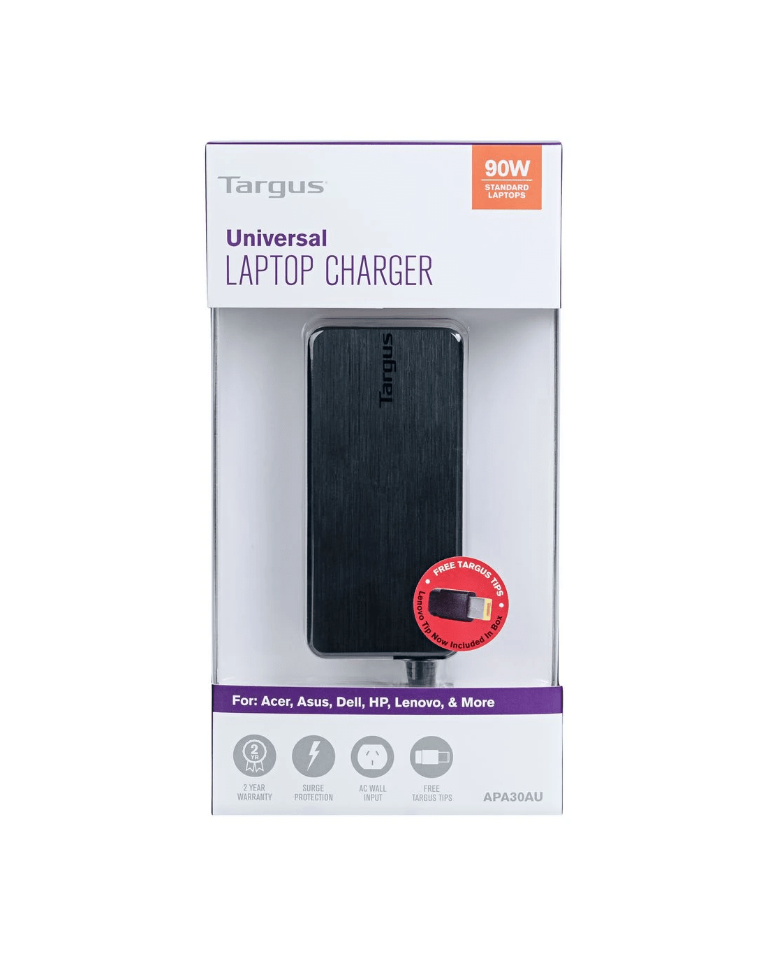 This Targus 90 Watt Multiple Laptop Charger comes with a range of tip types making it compatible for use with most laptops. It's perfect if you've lost your charger or own differently branded laptops. It has a slim and lightweight design which makes it ideal for travelling as well as an AC power source so you can plug it into standard wall sockets.
