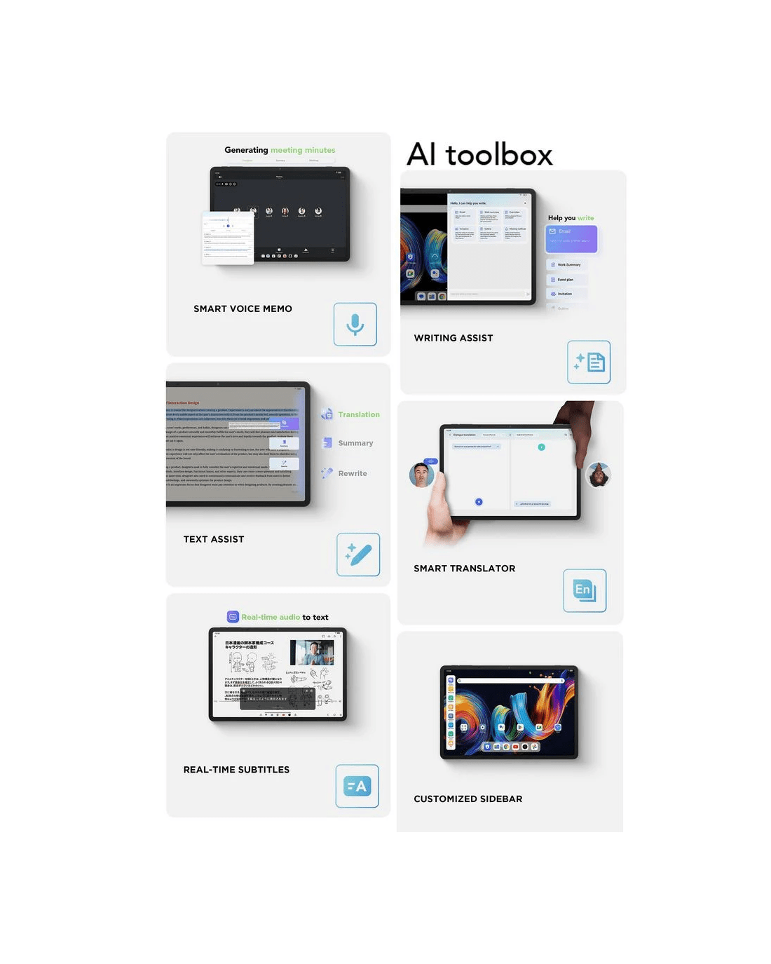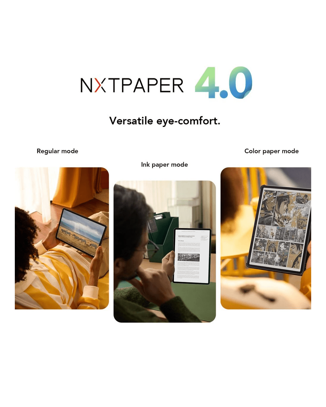 - 11.45" LCD display with a resolution of 2200 x 1440, and NXTPAPER technology giving it a paper-like look and feel.