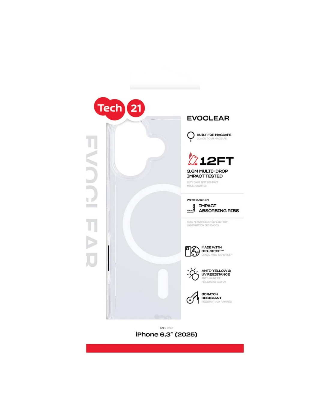 This EvoClear case with MagSafe offers 12FT/3.6M multi-drop impact protection in a slim, transparent design that shows off your iPhone. It’s made with bio-spice material and includes UV-resistant agents to help prevent yellowing over time. Plus, the scratch-resistant finish and raised camera bevels keep your device looking fresh and protected.