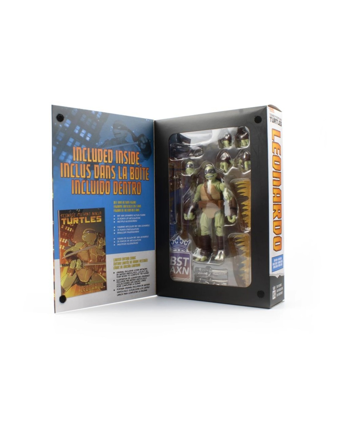 The Teenage Mutant Ninja Turtles (Comics) Leonardo BST AXN Figure is designed for fans and collectors of action figures and TMNT memorabilia. This highly poseable 5-inch figure brings Leonardo to life with detailed accessories and exclusive comic book content, making it a must-have for enthusiasts.