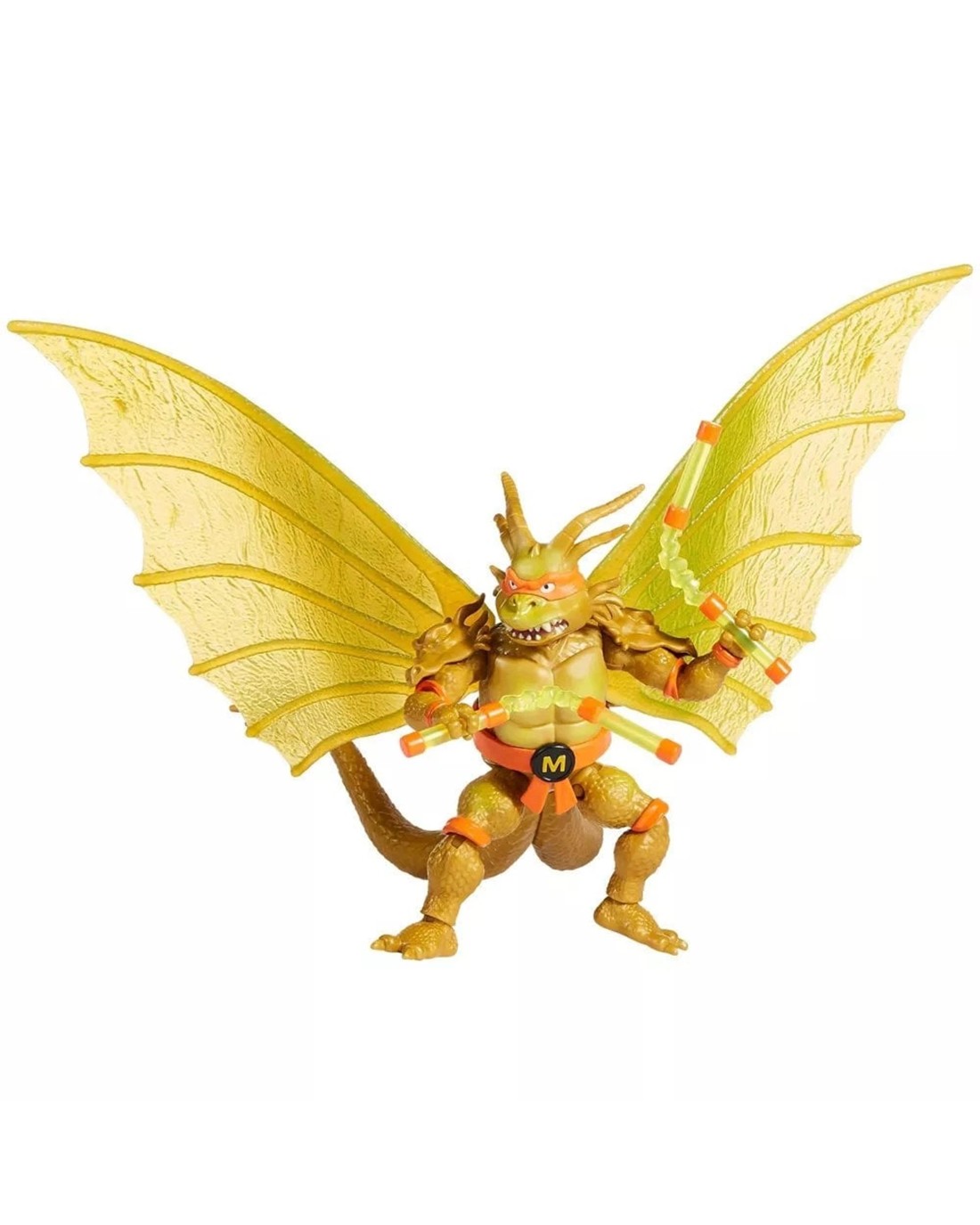 Brace for mutant mayhem! Mikey transforms into the monstrous King Ghidorah in this epic Teenage Mutant Ninja Turtles x Godzilla crossover figure. With three fierce dragon heads, golden scales, and energy-powered nunchucks, Mikey is ready to take on any villain threatening the city—or the multiverse. Standing 5 inches tall with multiple points of articulation, this figure captures the essence of both TMNT's fun-loving Michelangelo and the raw power of King Ghidorah. Complete with translucent energy weapons and bold collector-style packaging, this Three-Headed Mutant is a must-have for fans of Godzilla, kaiju battles, and Teenage Mutant Ninja Turtles. Ages 4 +