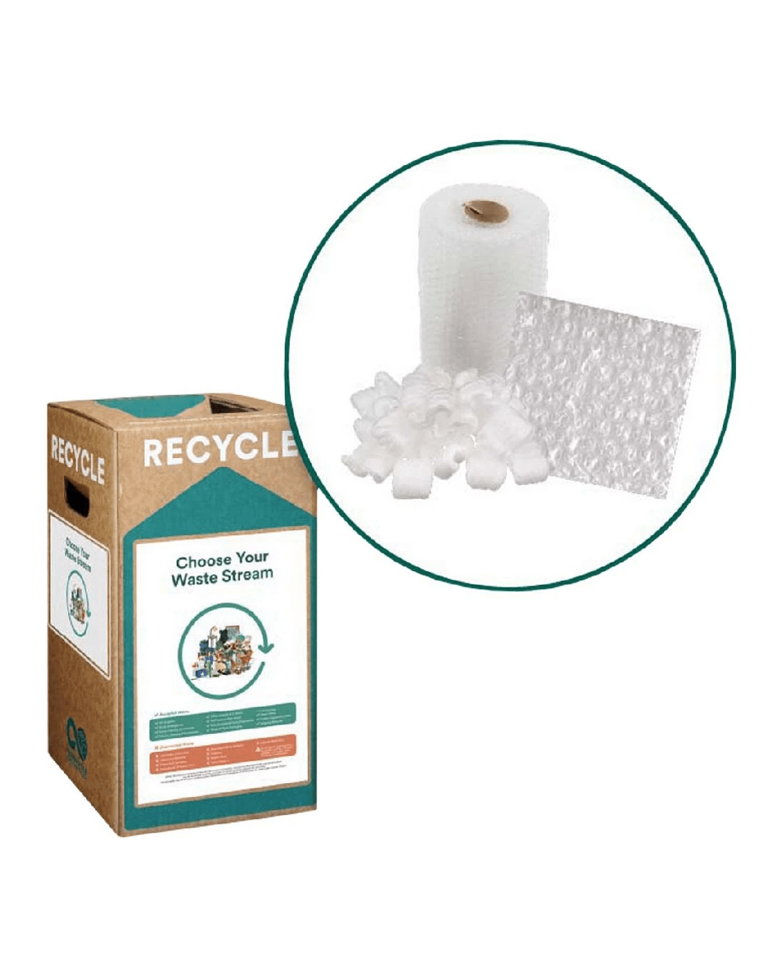 • Use this to recycle the following materials: stretch wrap, bubble wrap, packing foam, shipping peanuts, air cushions, and tape dispensers.