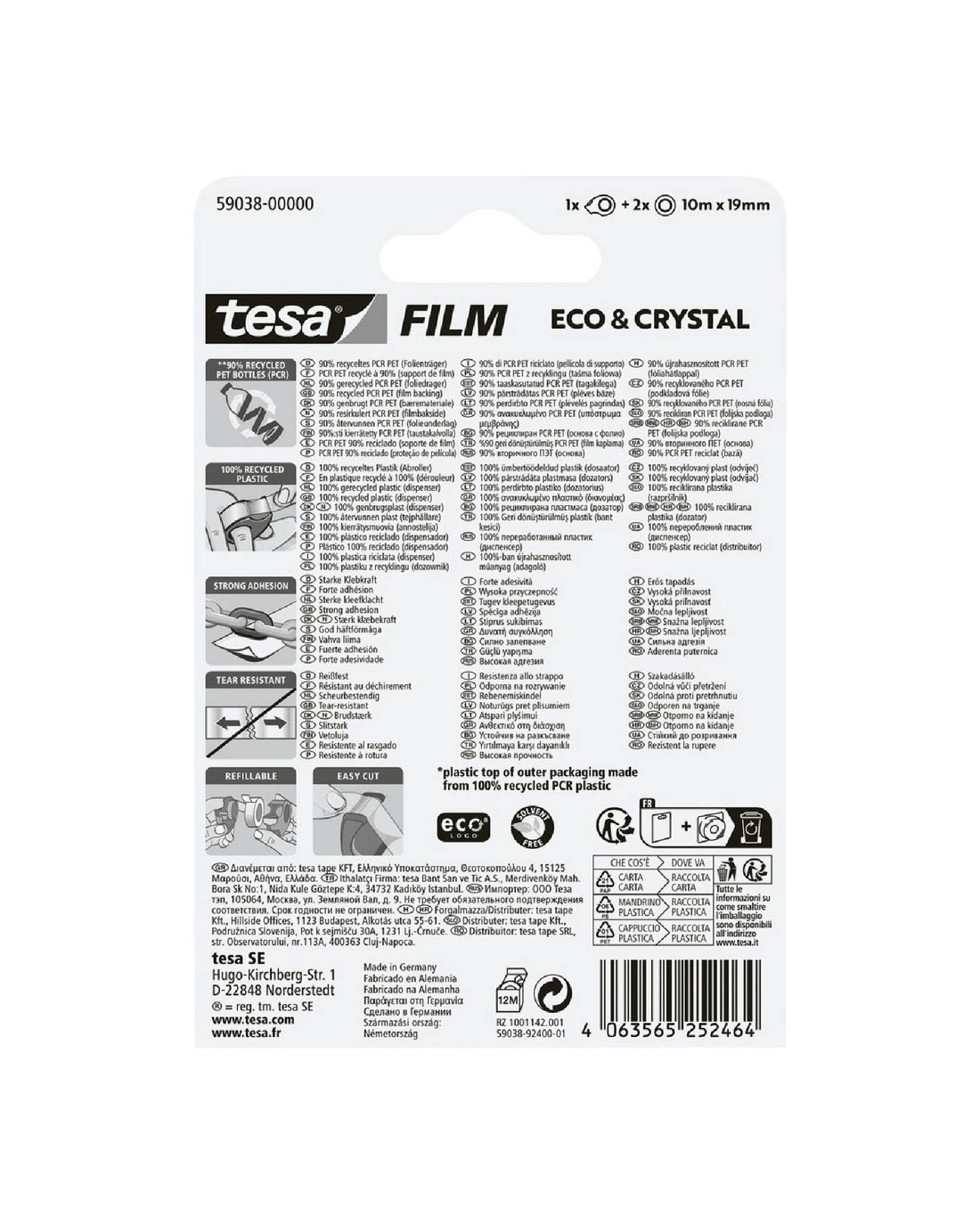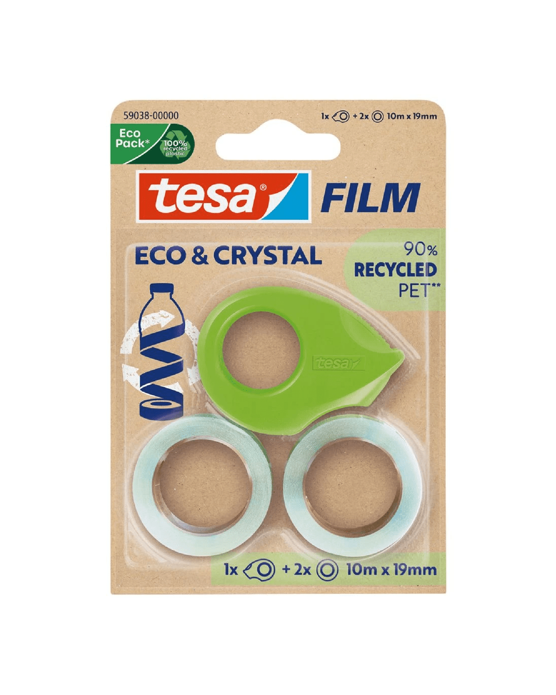 Sold by OfficeworksTesa Eco and Crystal Tape and Mini Dispenser 10m x 19 mm 2pk