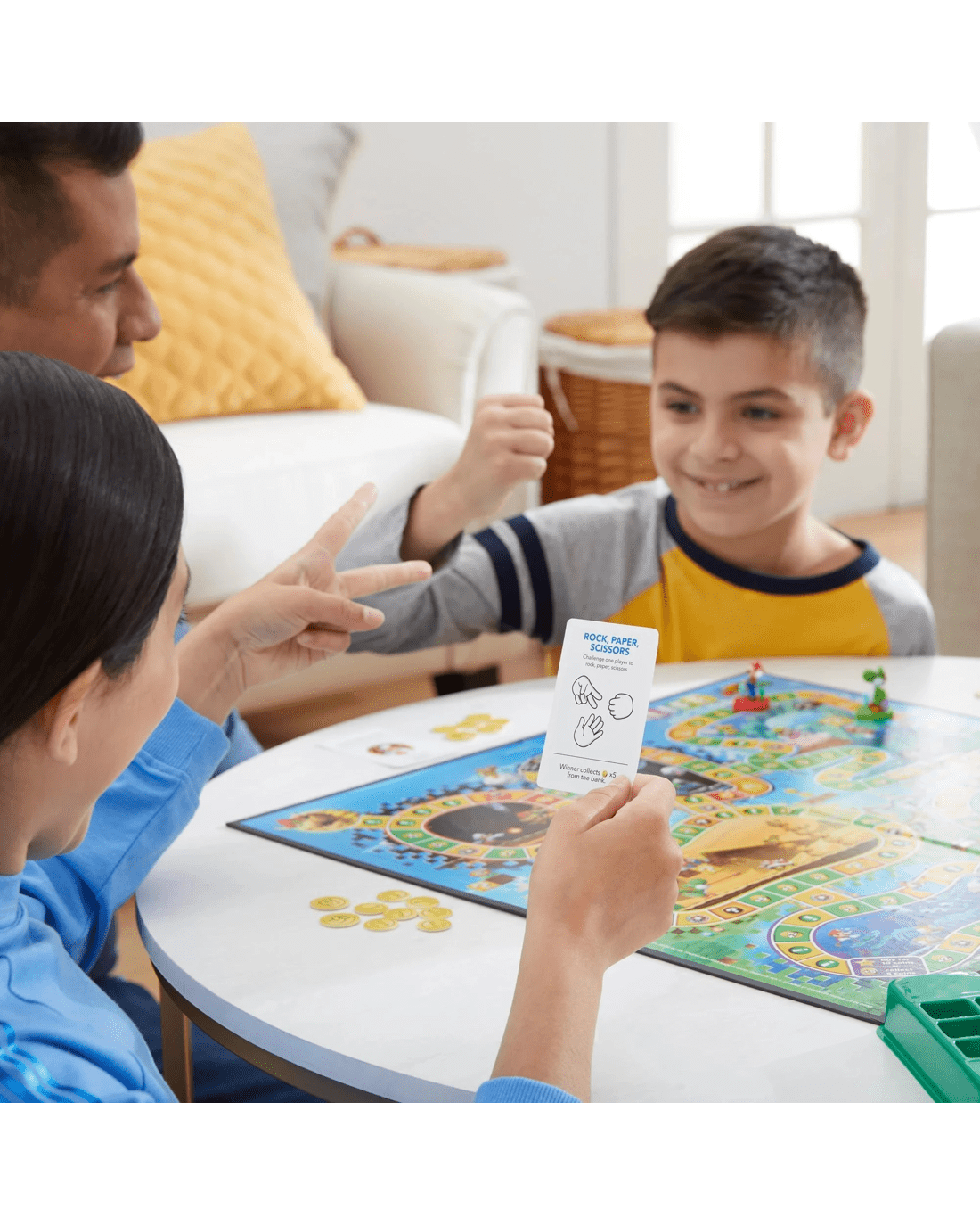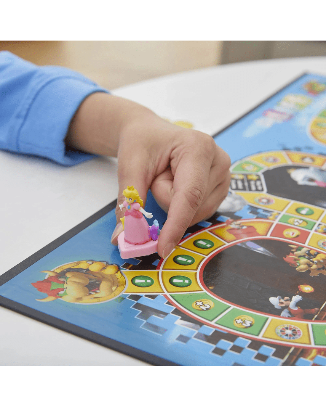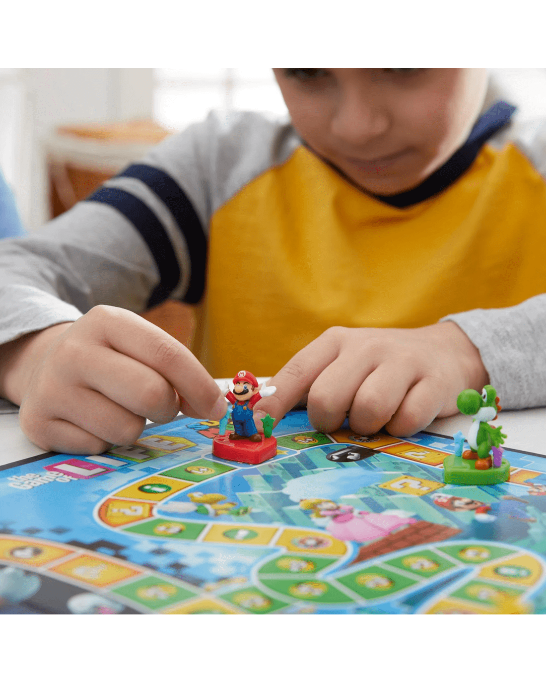 • MOVE THROUGH THE MUSHROOM KINGDOM: Players move around the gameboard as Mario, Luigi, Peach, or Yoshi. They choose their path and which areas to explore as they go through the Mushroom Kingdom