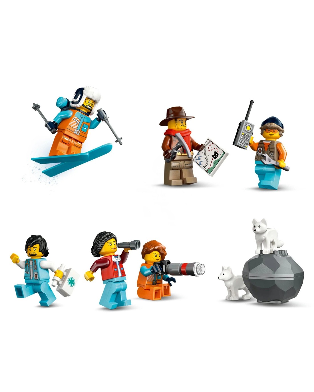 • Features and functions - Kids can drive the toy train through the mountain tunnel to activate a rockfall function and send minifigures down a zip line that connects the mountain to the Arctic outpost