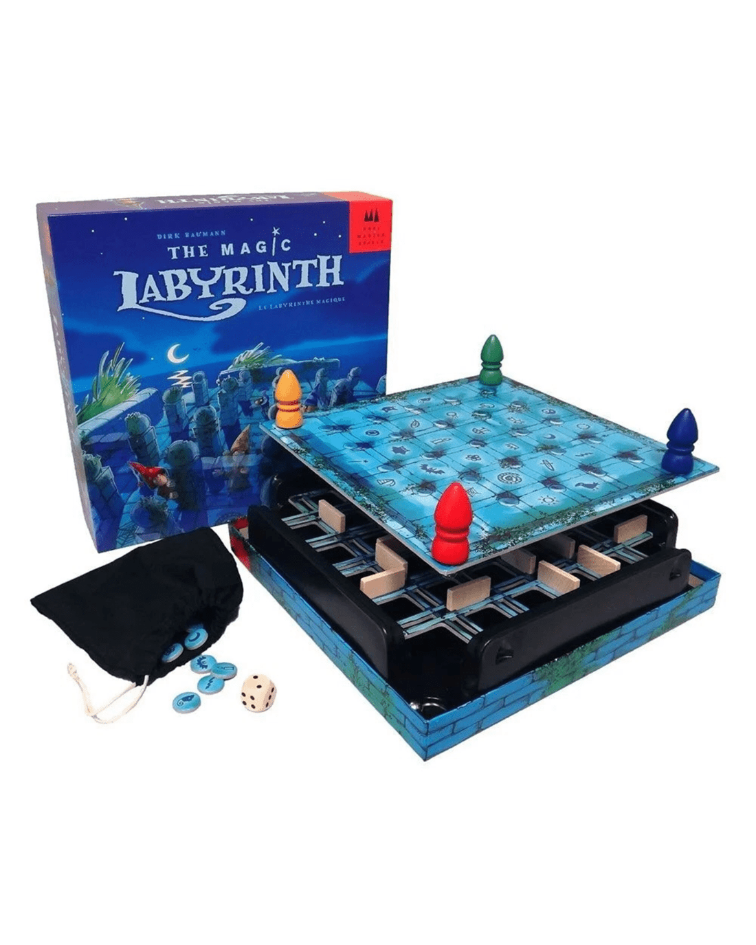 Each player moves their magician over the board while trying not to bump the labyrinth below. Each magician is joined with a magnetic ball so if you hit a wall the ball drops and you have to start all over again.
