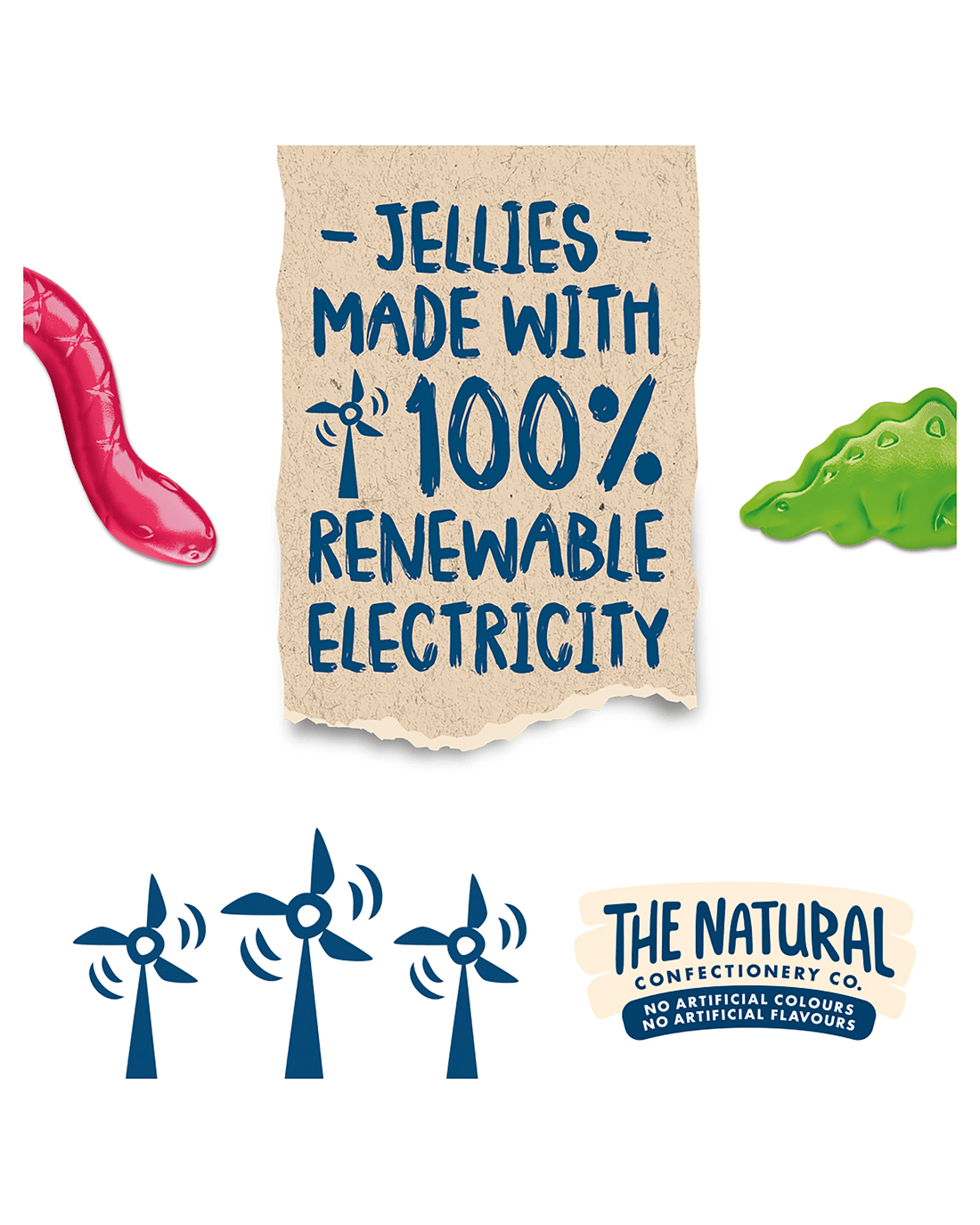 • Ingredients: Glucose Syrup (from Wheat and Corn), Cane sugar, Thickener (Acid Modified Wheat Starch), Gelatine, Food Acid (Citric), Fruit Juice Concentrate, Natural Flavours, Natural Food Colours (Anthocyanins, Black Carrot, Grape Skin Extract, Spirulina, Paprika Oleoresin, Turmeric), Glazing Agent (Vegetable Oil, Carnauba Wax)