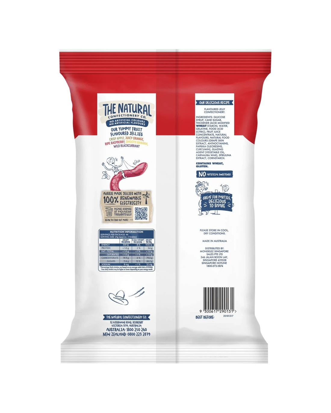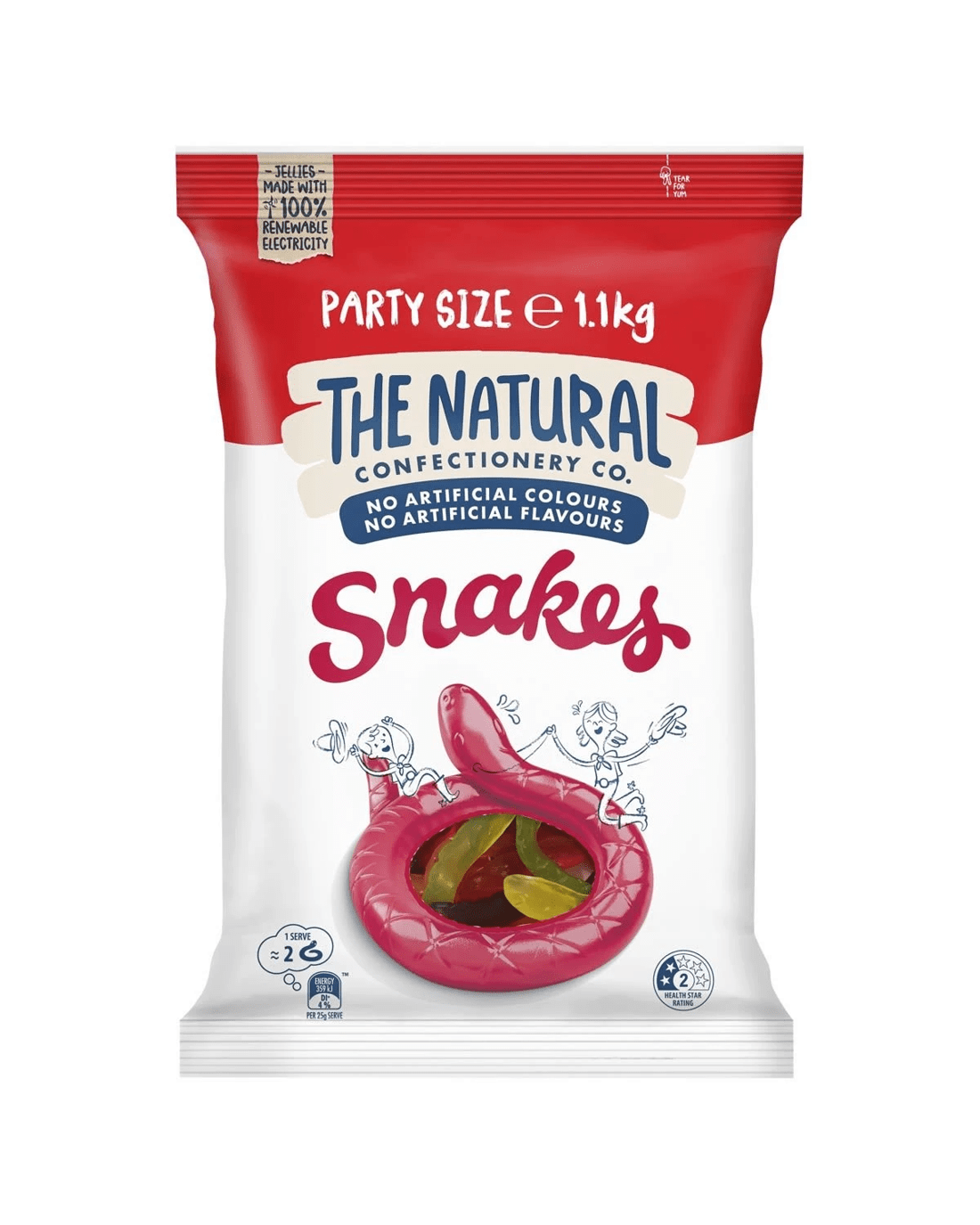 The Natural Confectionery Co. Snakes Lollies Party Size 1.1kg