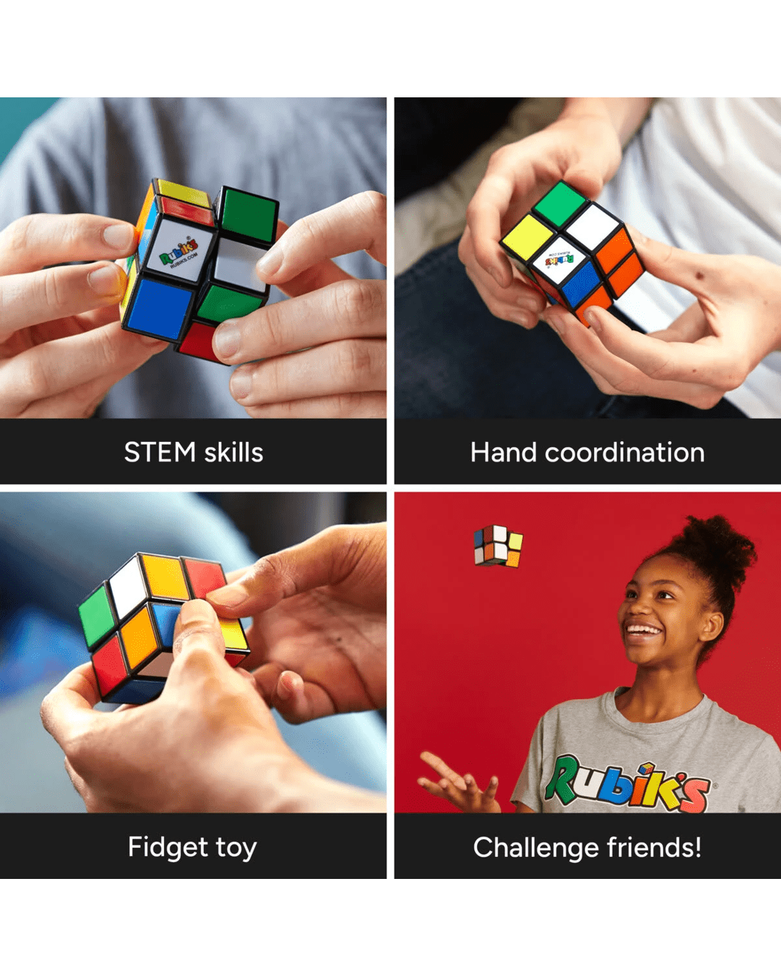The Rubik’s Cube is a classic colour-matching puzzle that can be enjoyed at home or on the move. The classic 2x2 cube is a highly addictive brain teaser that has fascinated fans all around the world with its iconic play. Also known as the pocket or mini cube, don’t be fooled by the cube’s smaller size, it is still a challenge with 3,674,160 permutations. The smaller puzzle cube features a new and improved mechanism that results in a smoother, faster and more reliable play. The fastest time for solving the 2x2 Rubik’s cube was under 2 seconds - challenge yourself and attempt to beat that record! Gone are the days of Rubik’s Cubes with stickers, we replaced these with colour tiles that will never fall out, never peal and never fade.