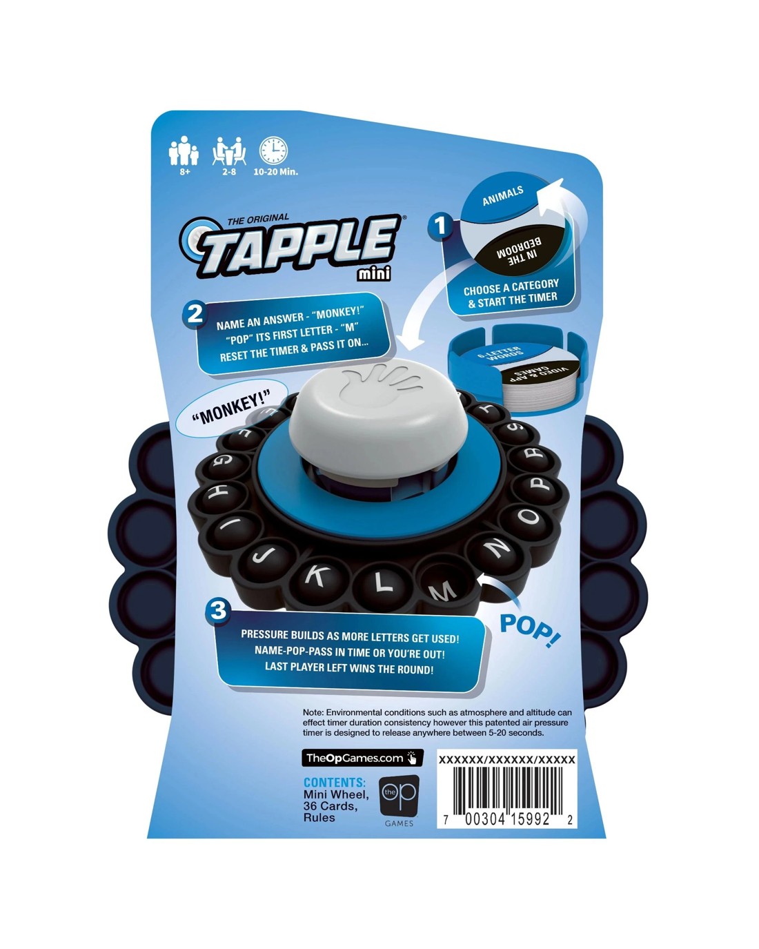 The 1 viral party game … to go! Tapple® Mini is the portable version of the award-winning, fast-paced word game that has sold millions of copies worldwide! Small in size but big in fun, Tapple® Mini is the perfect game to play on the go or bring on your next trip. Ages: 8 + | Players: 2 - 8 | Players: 10 - 20 Mins