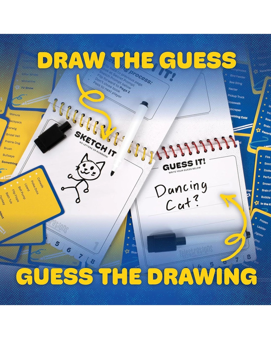 The award-winning party game Telestrations will get your family and friends laughing as they draw what they see, then guess what they saw for hours of hilarious miscommunication. All players simultaneously sketch, pass and guess while revealing laugh out loud and unpredictable outcomes! Ages: 10 + | Players: 4 - 8 | Playtime: 30 Mins