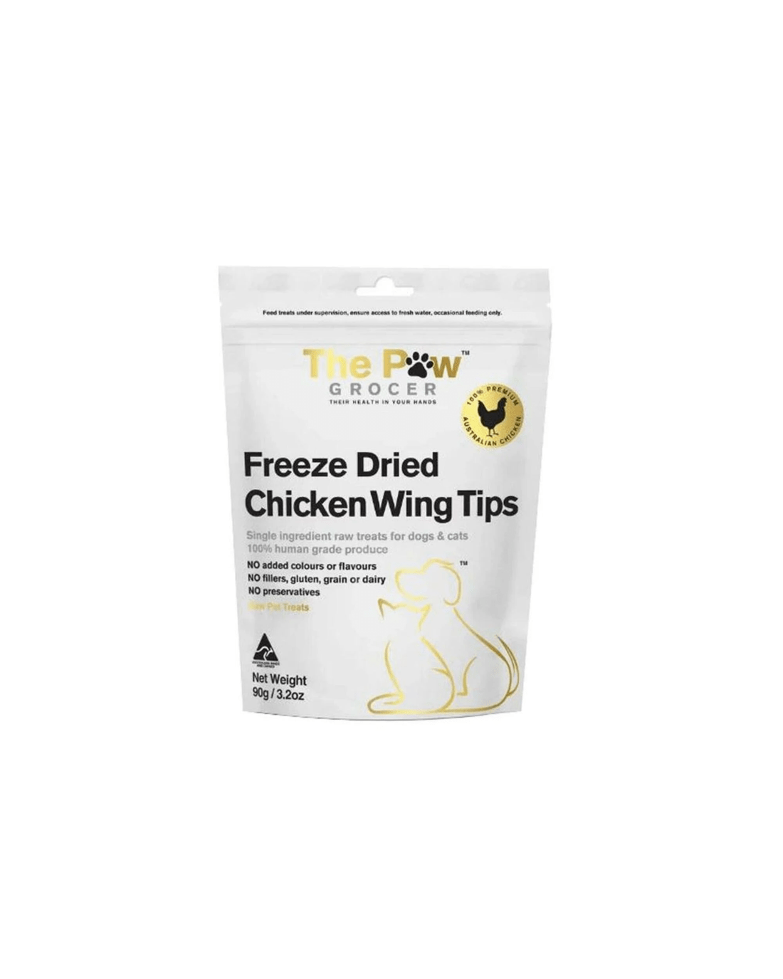 100% AUSSIE CHICKEN WING TIPS. NOTHING ELSE! The Paw Grocer treats are 100%, single ingredient Australian proteins No additives or fillers Our treats are biologically appropriate for both DOGS & CATSSimply freeze dried, which means the treats remain raw and retain their nutritional value