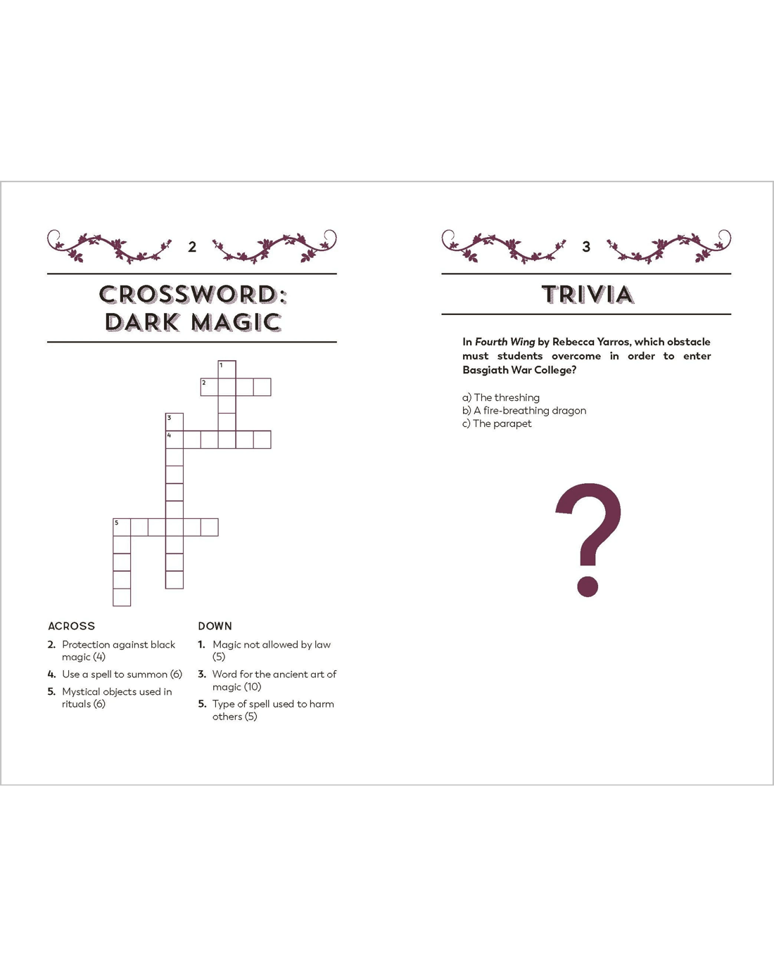 Inside these pages you'll discover classic conundrums and light-hearted games designed to immerse you in the world of romantasy. From faeries and dragons to amulets and curses, castles and ruins to lovers, enemies and just a smidgen of spice, this collection of puzzles will be sure to captivate fans of the genre.