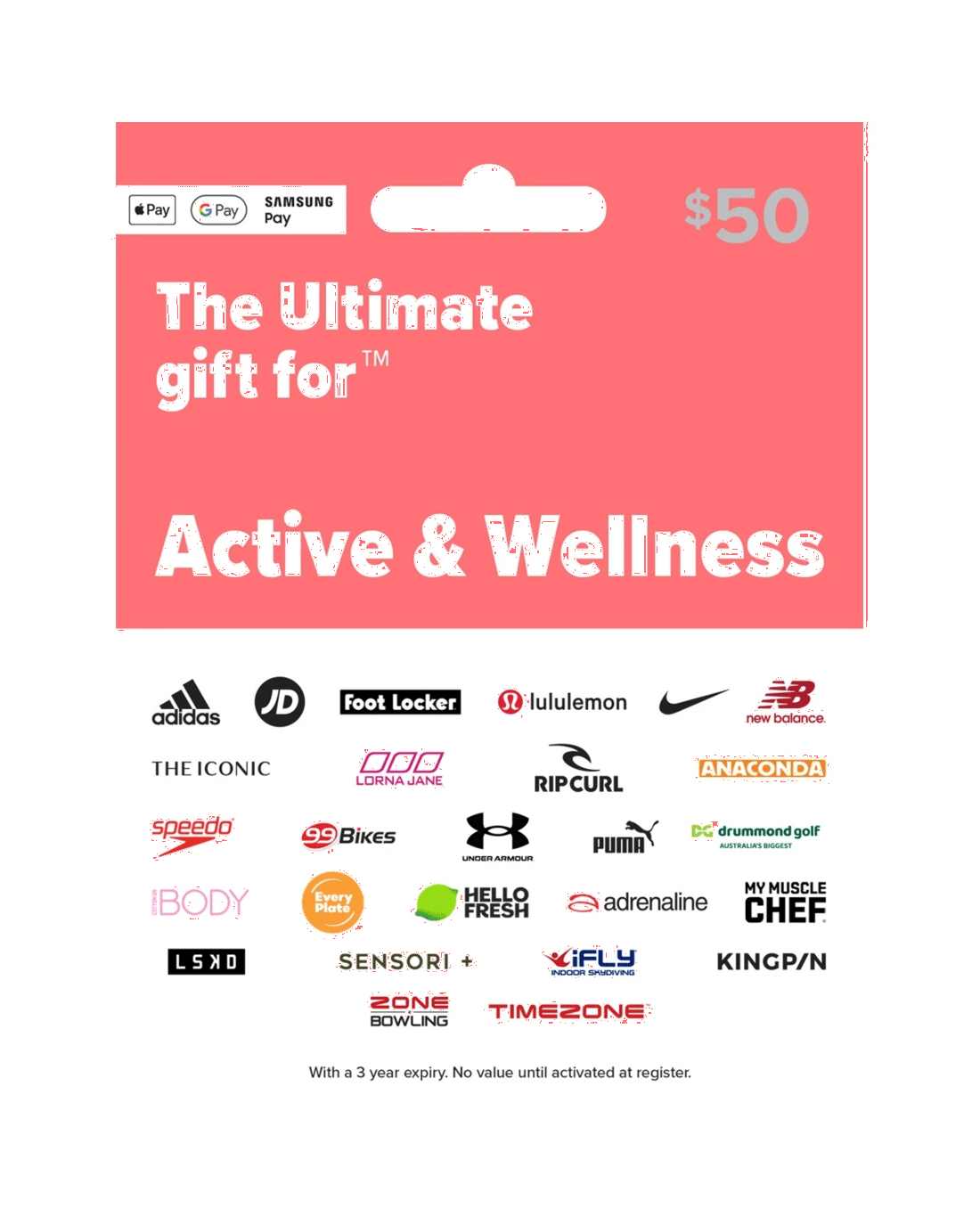 For anyone who loves to get their body moving be it on land, the pavement or riding the waves, the Ultimate Active & Wellness card will have them looking the part and geared-up from head to toe.