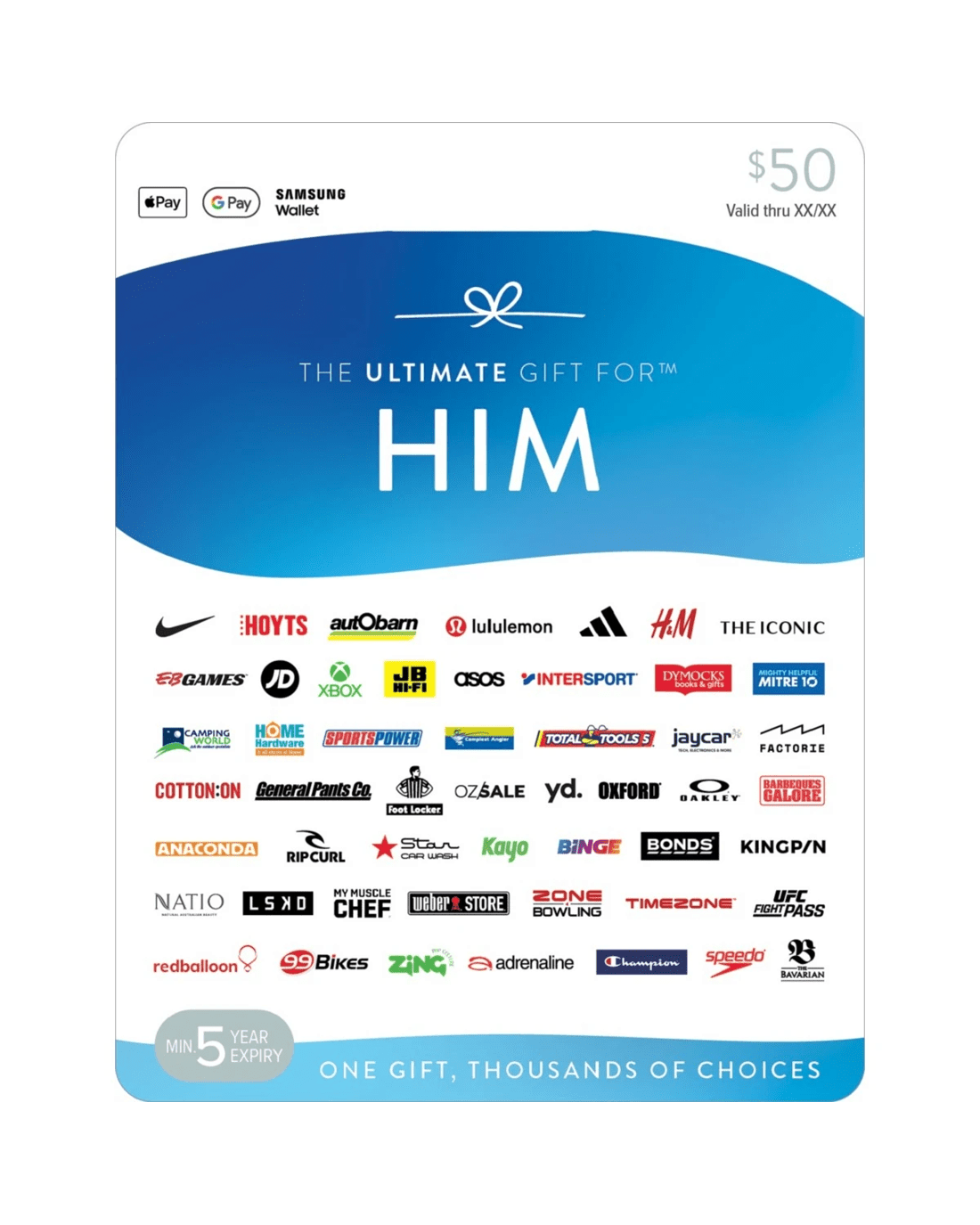 For sons, husbands, brothers, grandads and workmates The Ultimate Gift for Him Card takes the guess work out of gift buying.